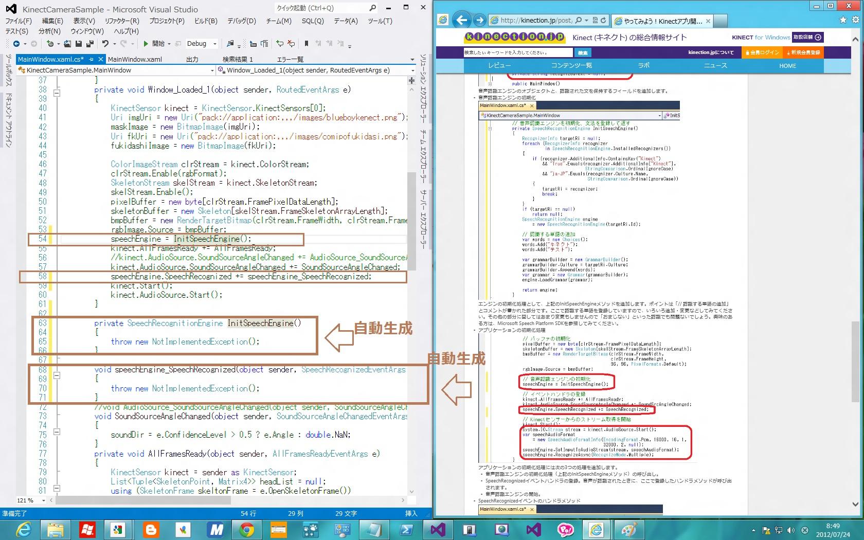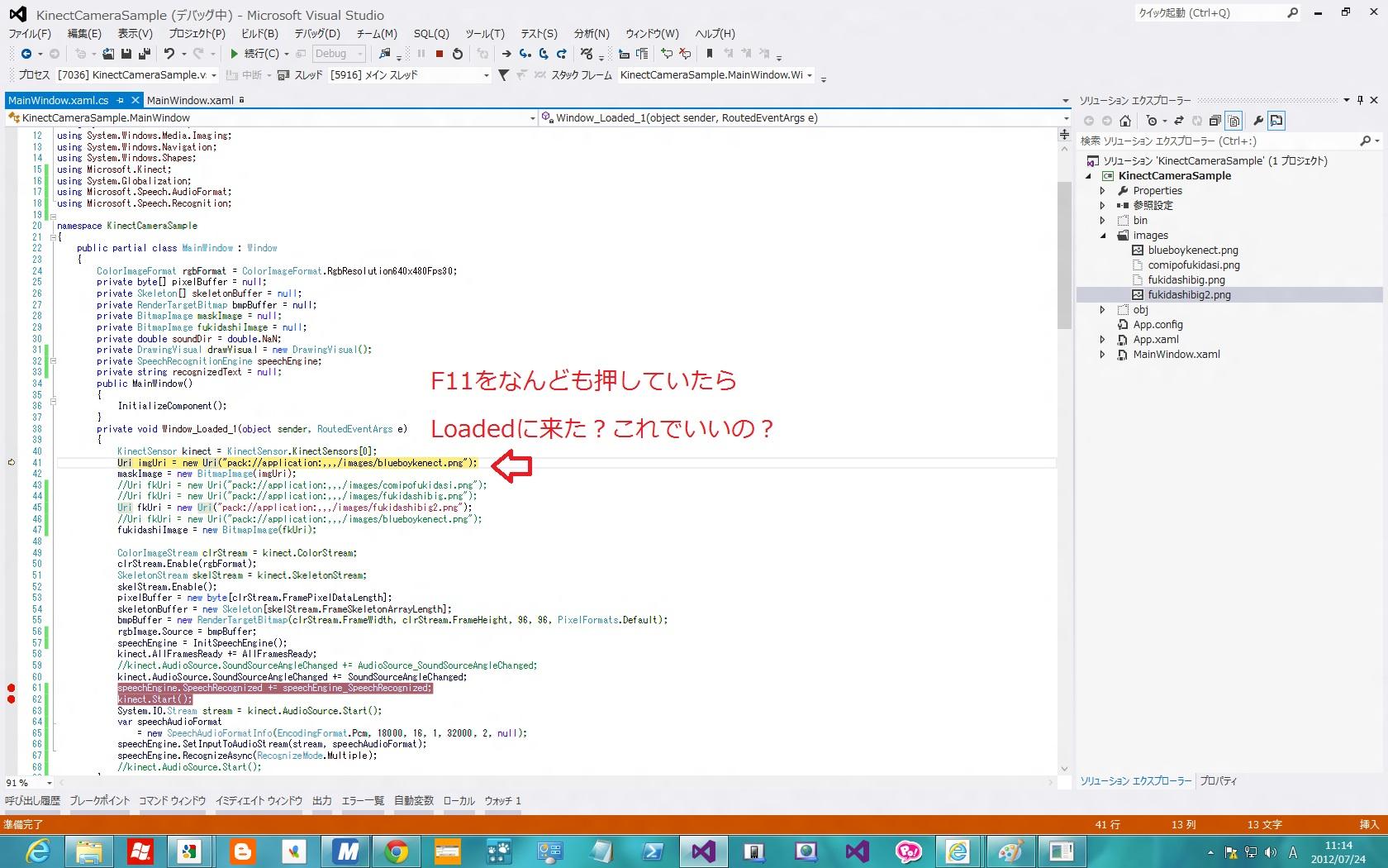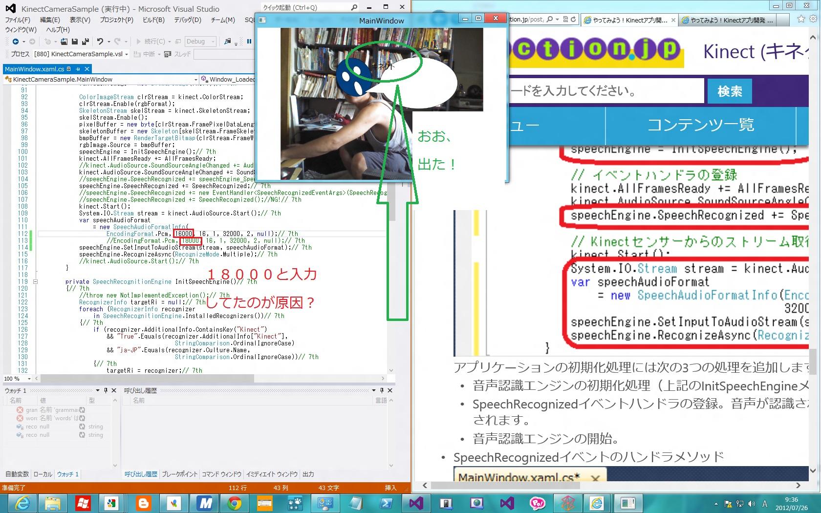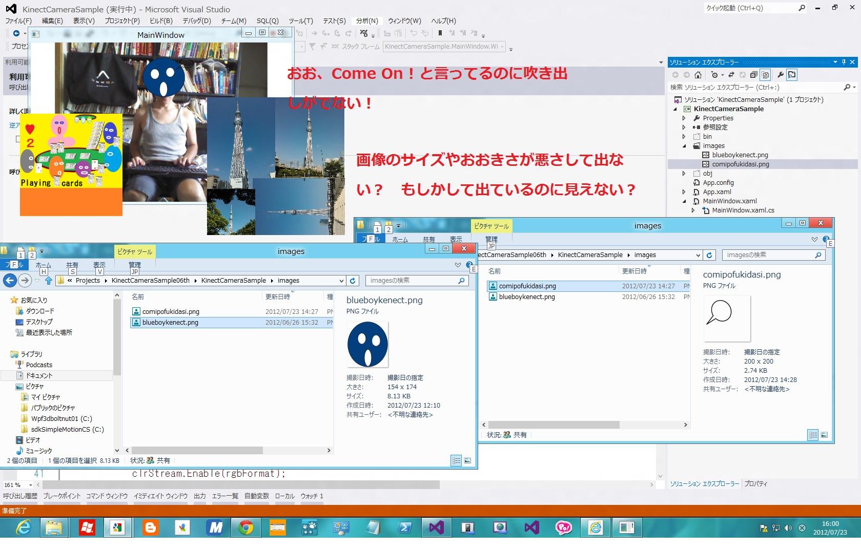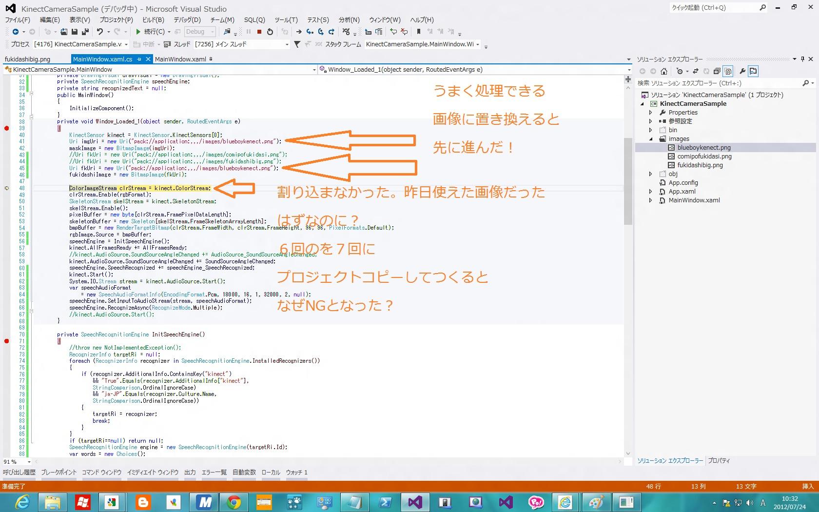 次はハンズオンテキストがそのままではエラーばかりなので、直しながらkinect の理解を深めてゆく。
