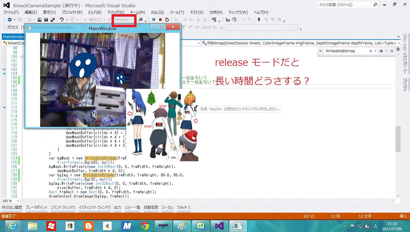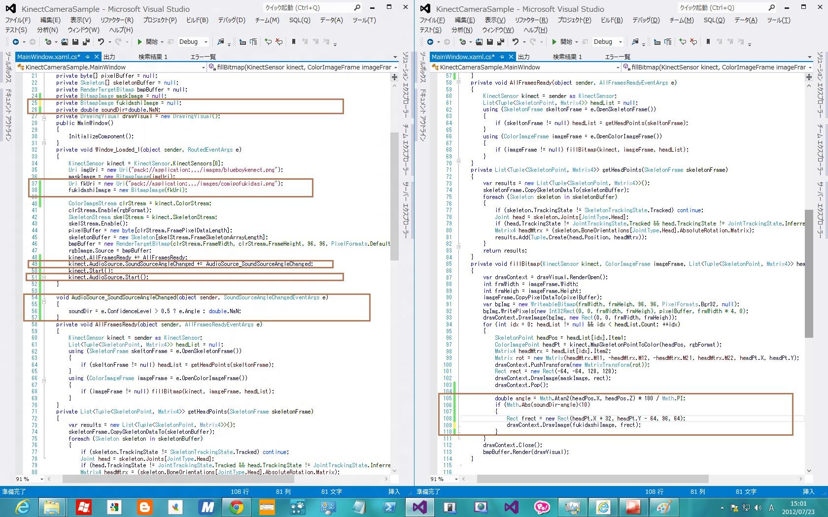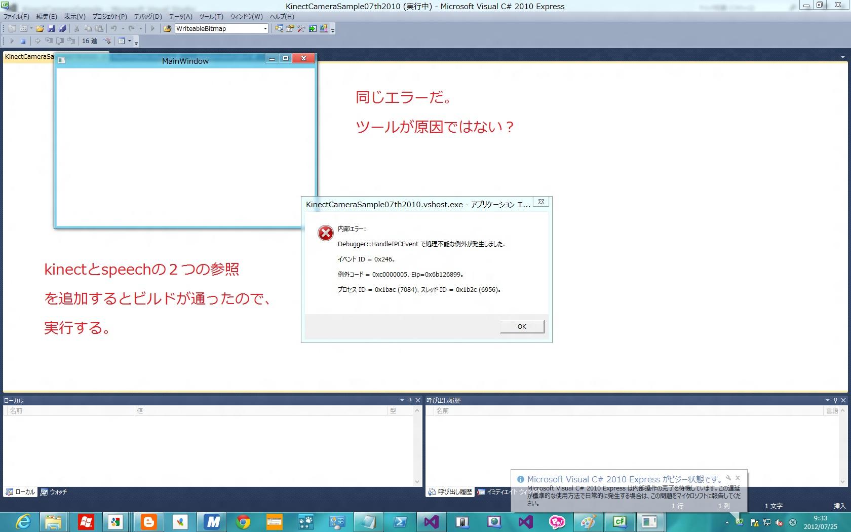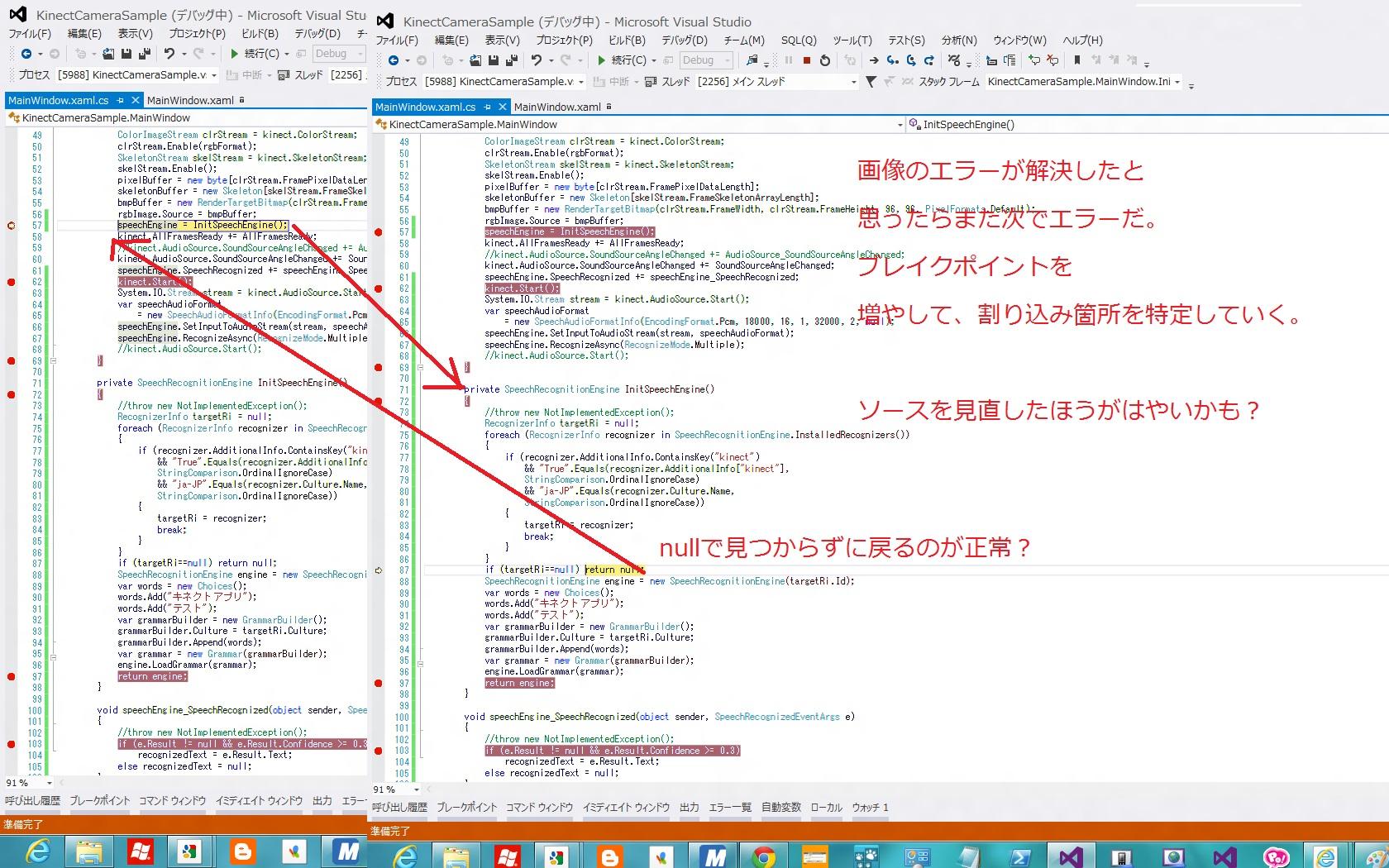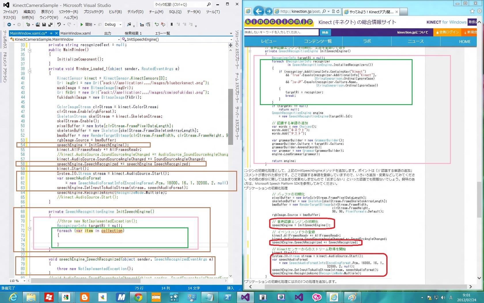 次はハンズオンテキストがそのままではエラーばかりなので、直しながらkinect の理解を深めてゆく。