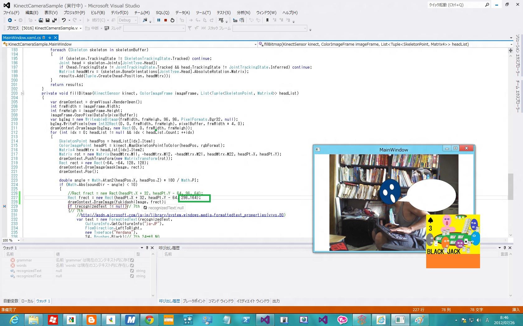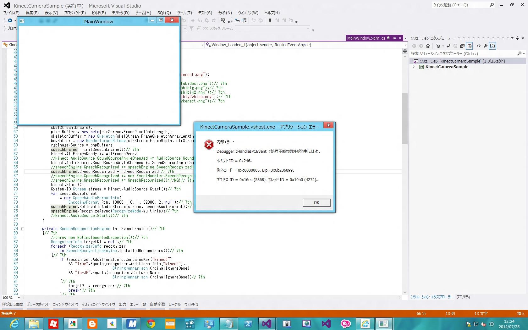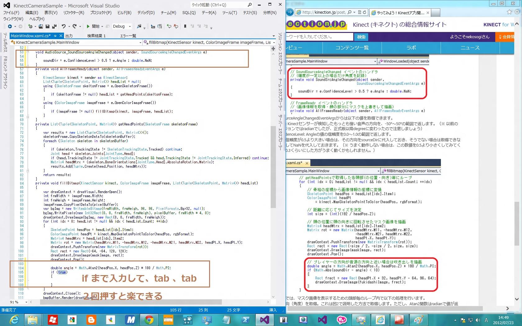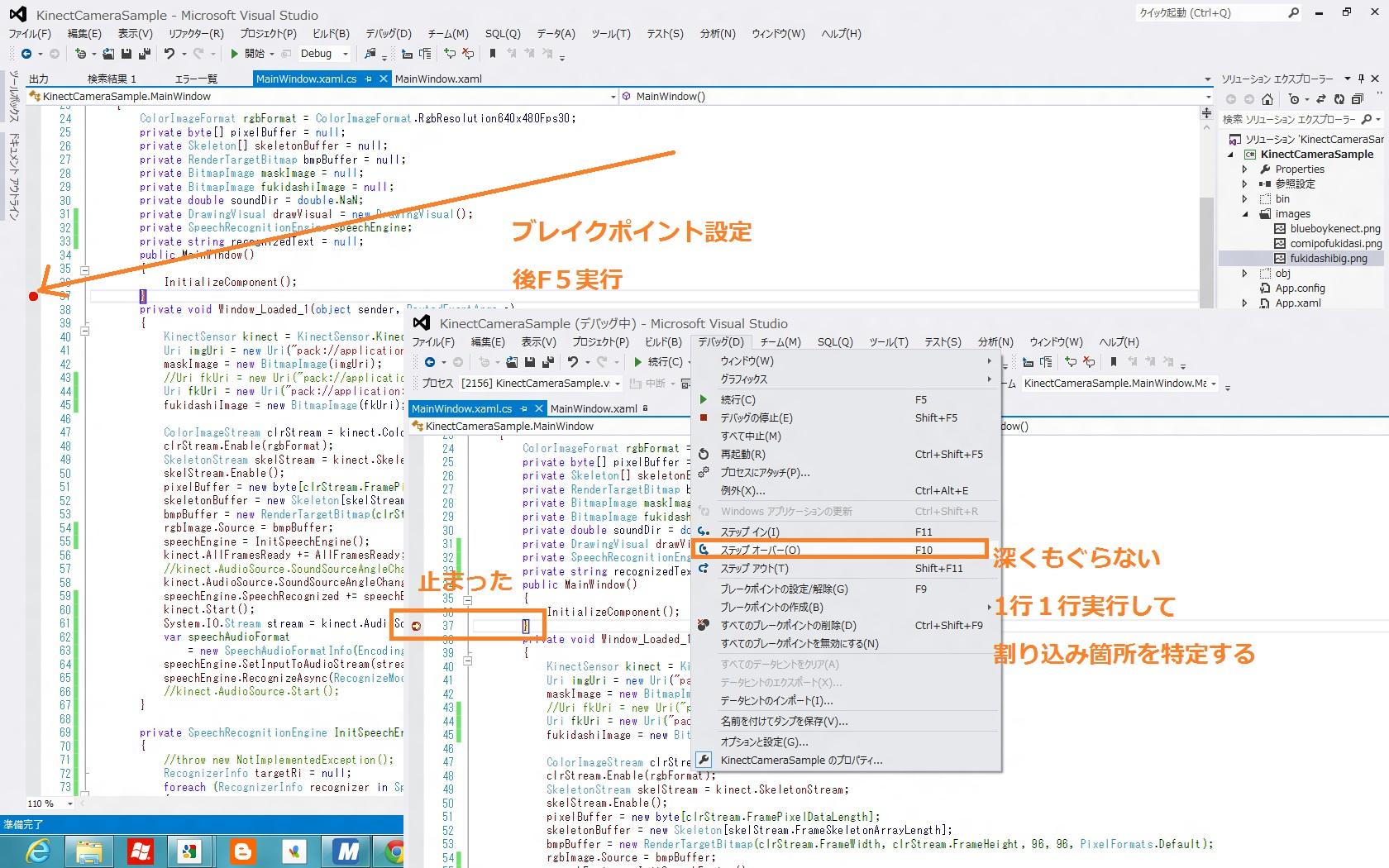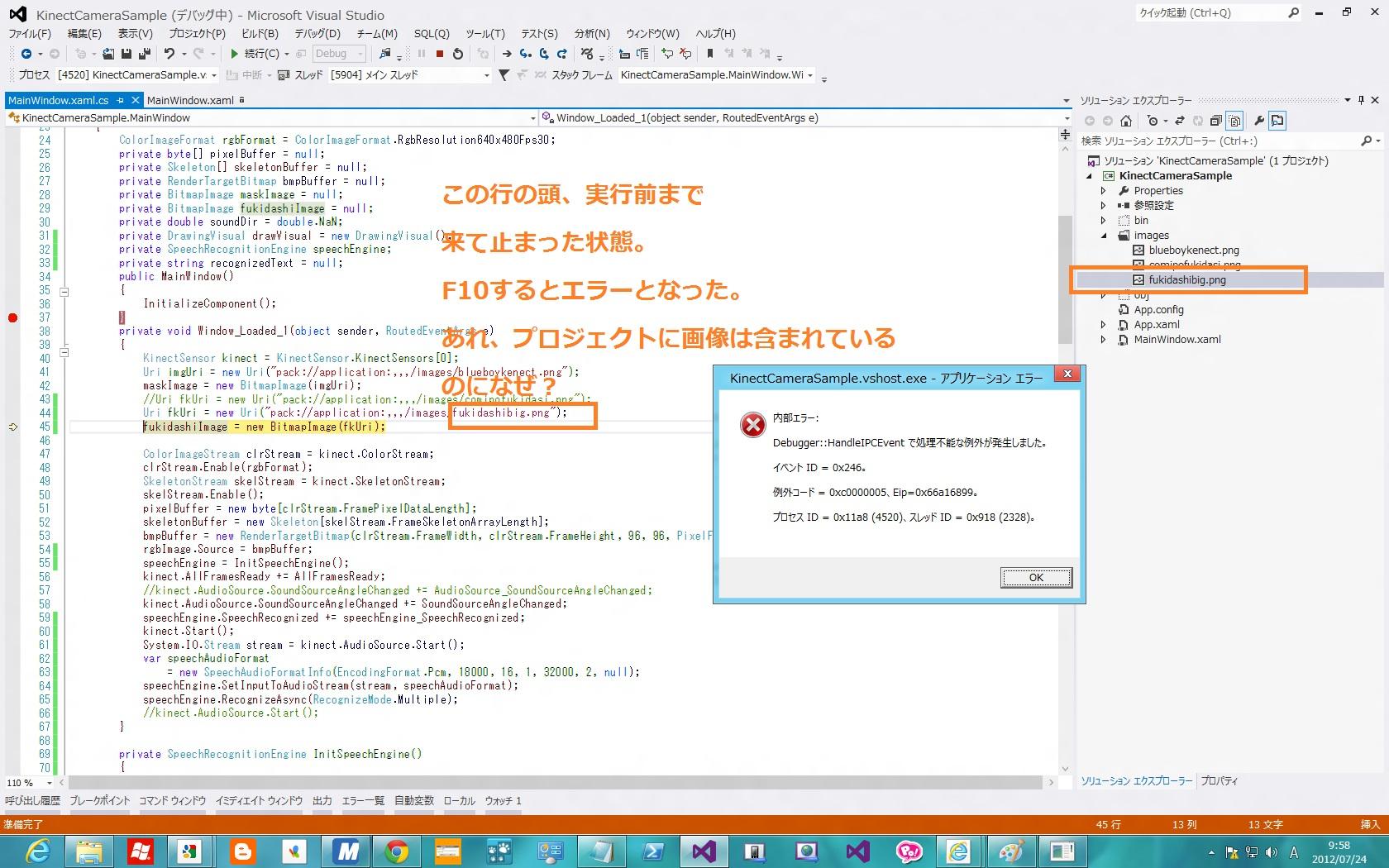 次はハンズオンテキストがそのままではエラーばかりなので、直しながらkinect の理解を深めてゆく。