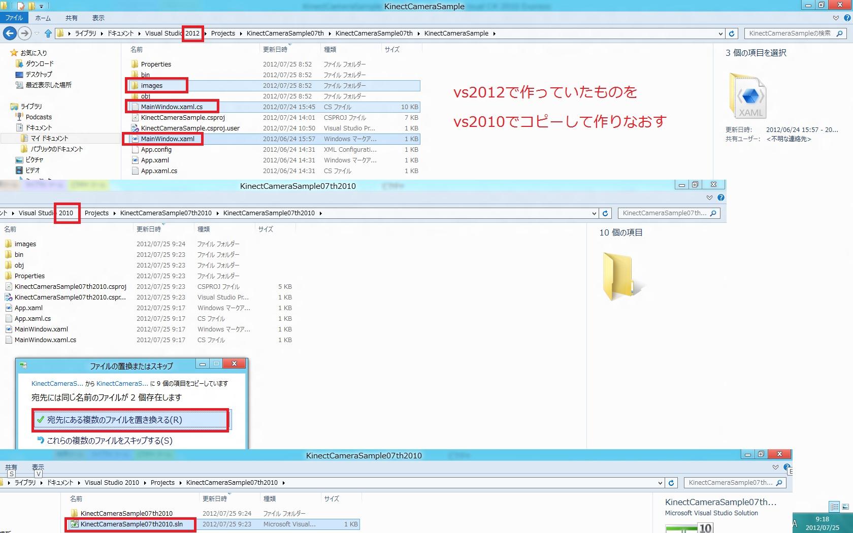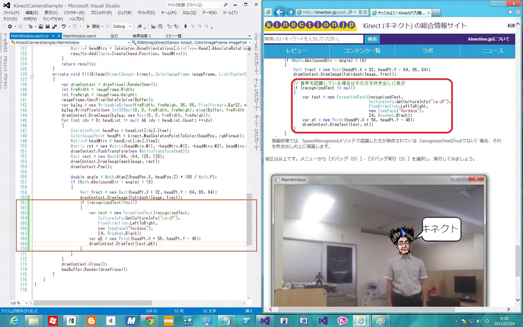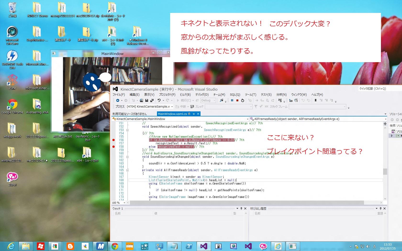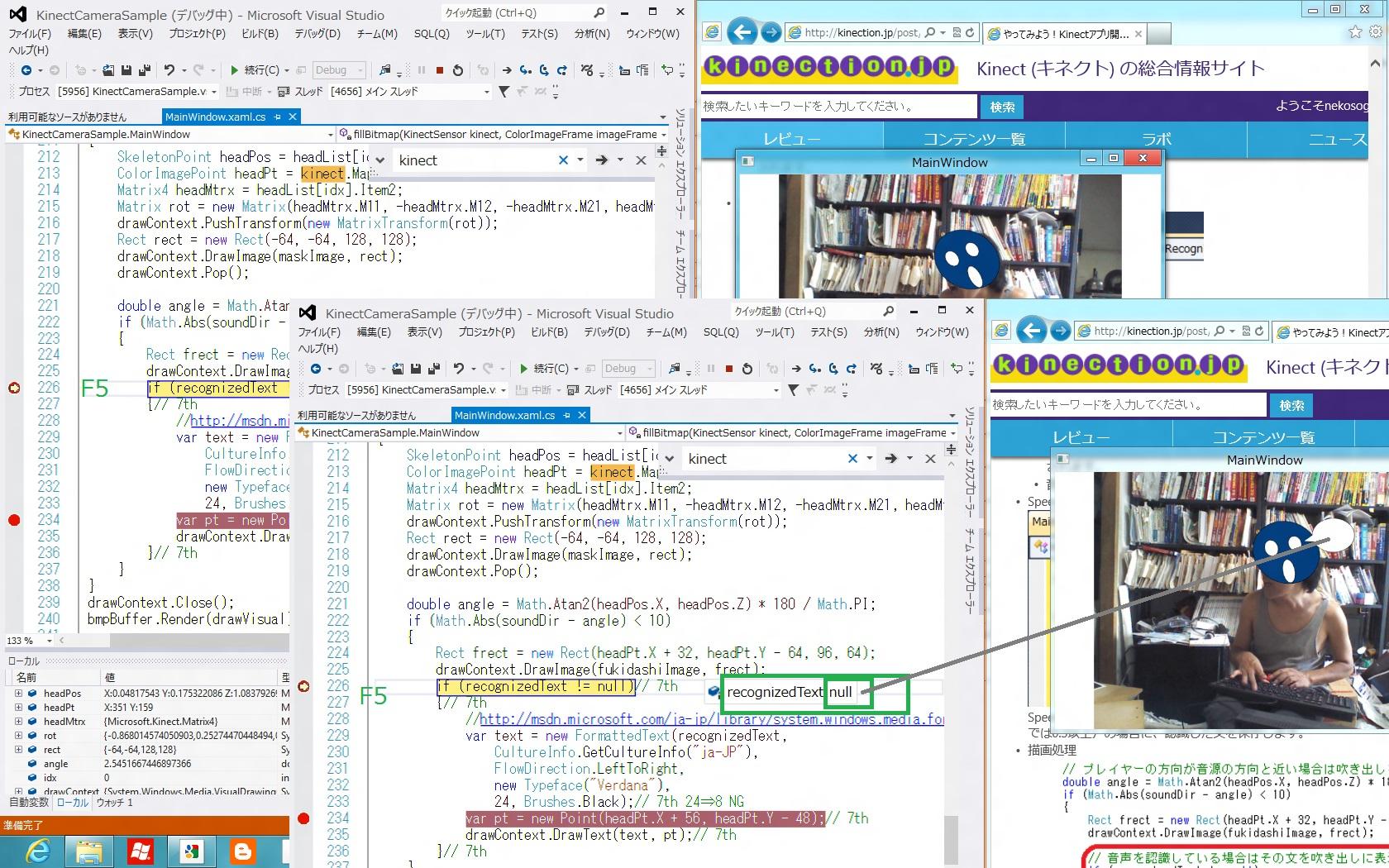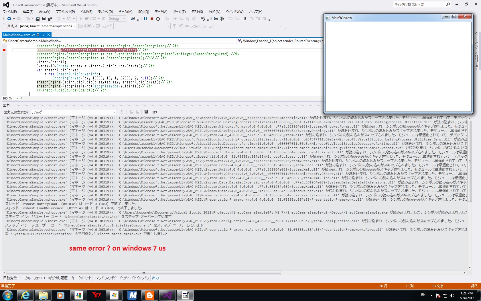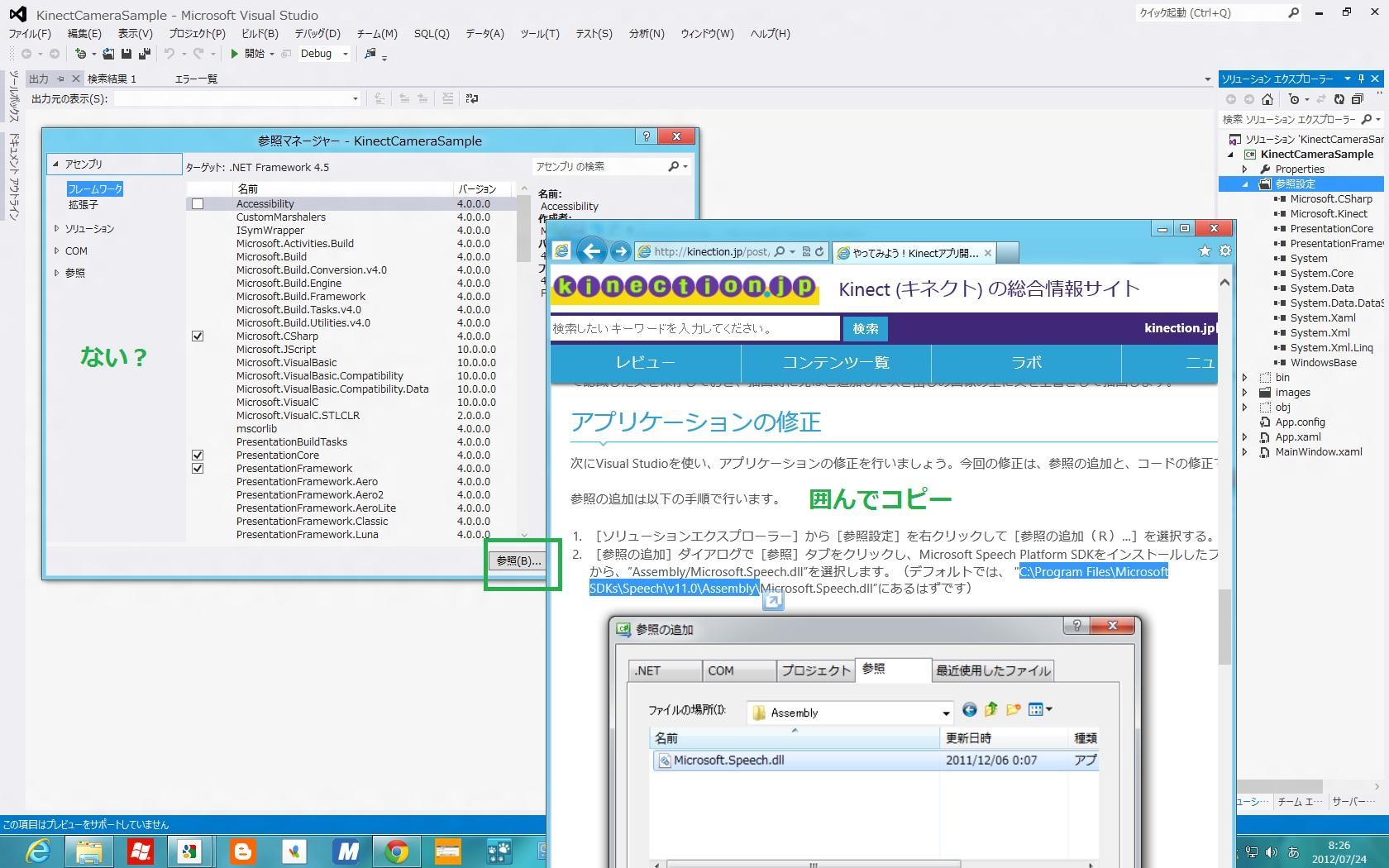 次はハンズオンテキストがそのままではエラーばかりなので、直しながらkinect の理解を深めてゆく。