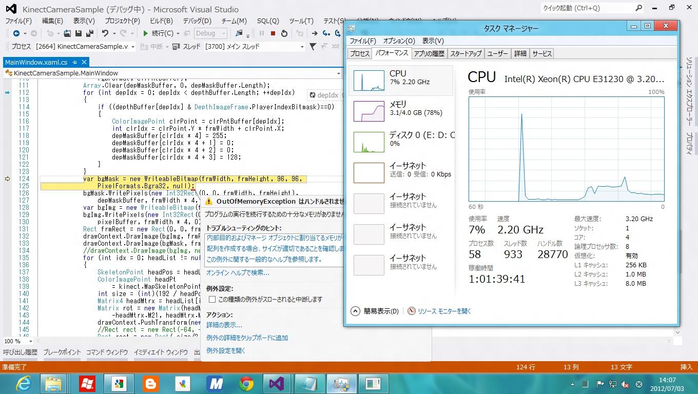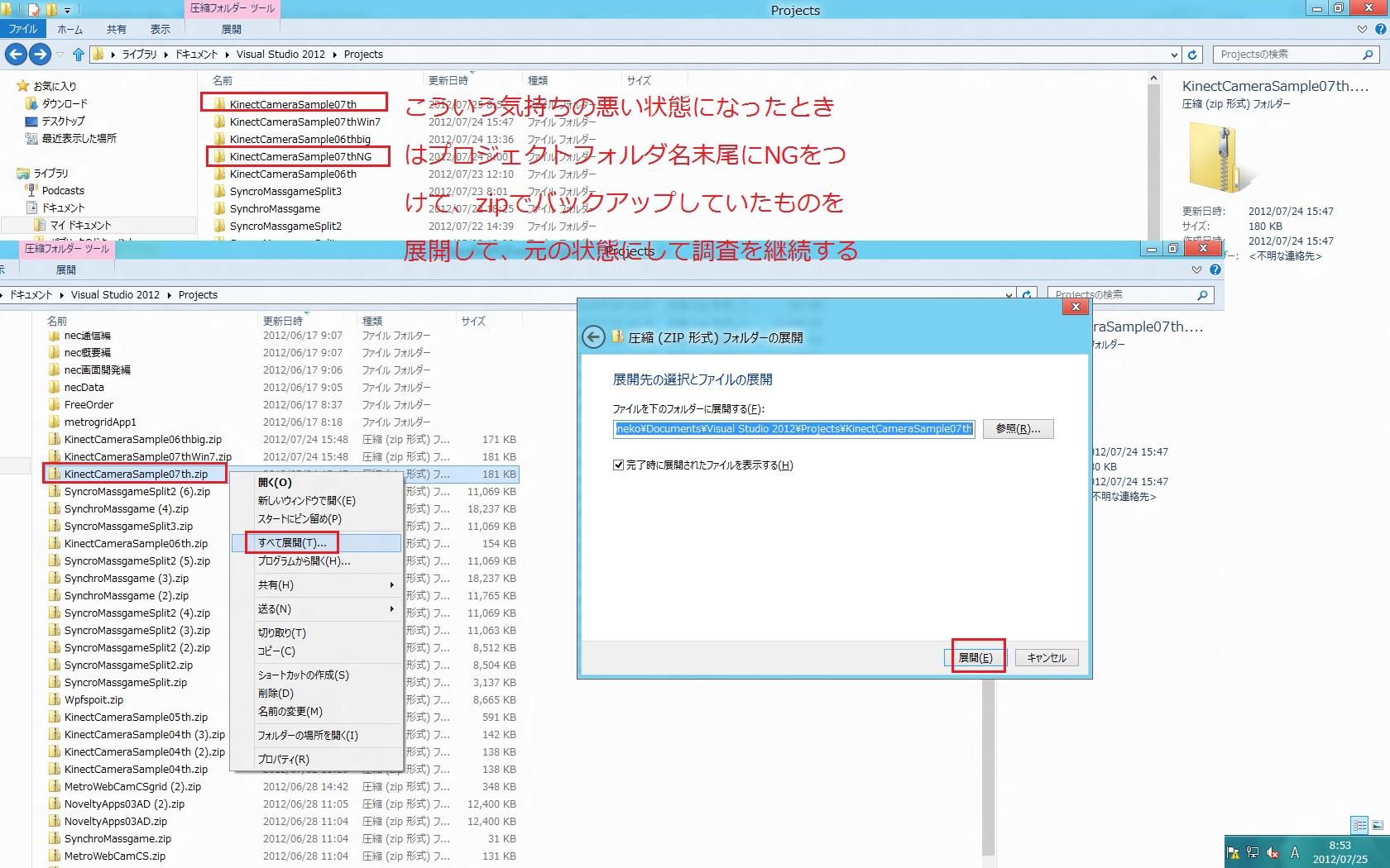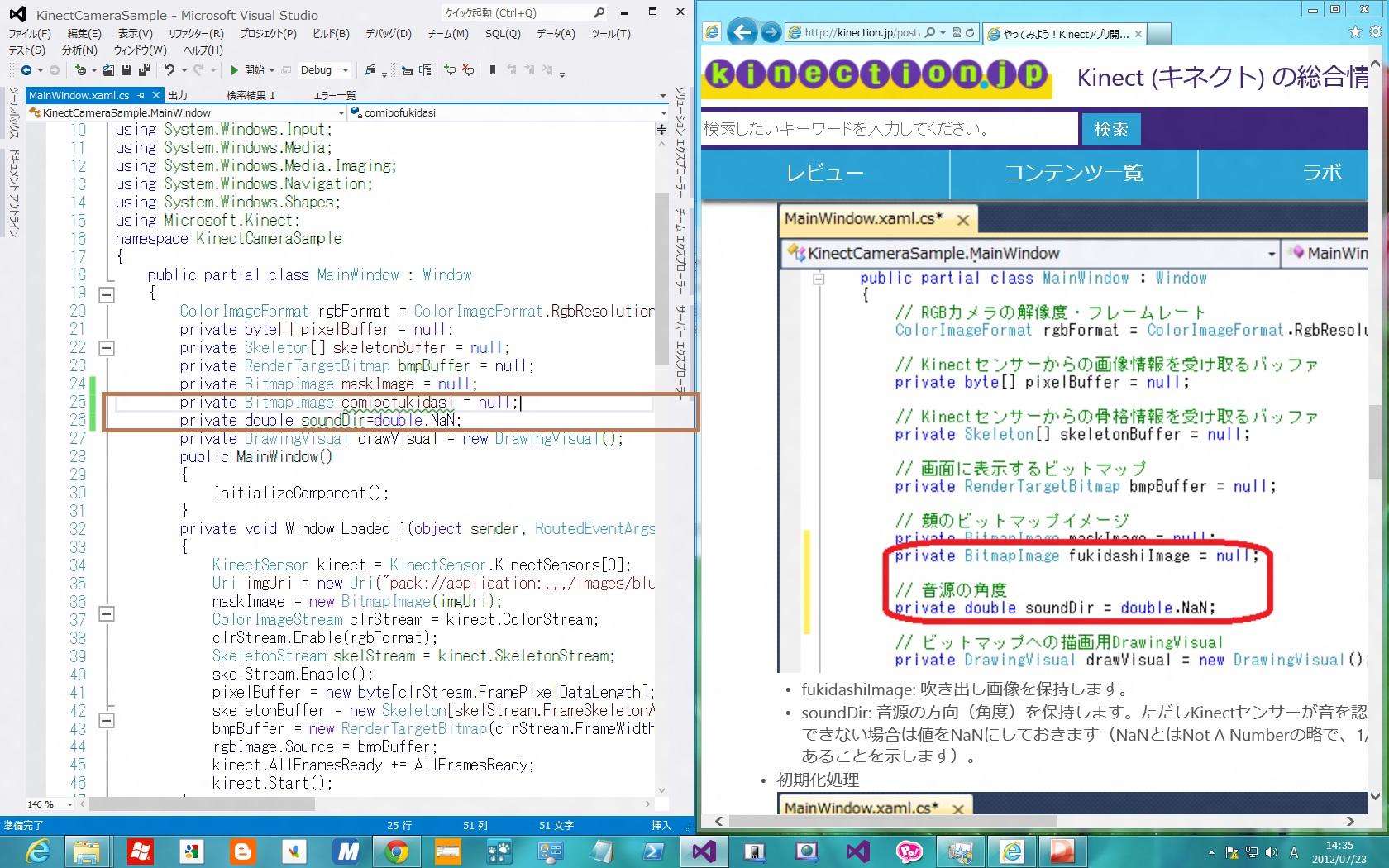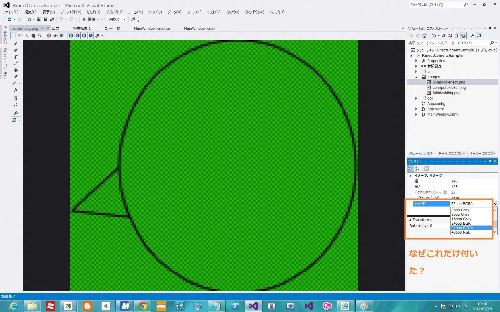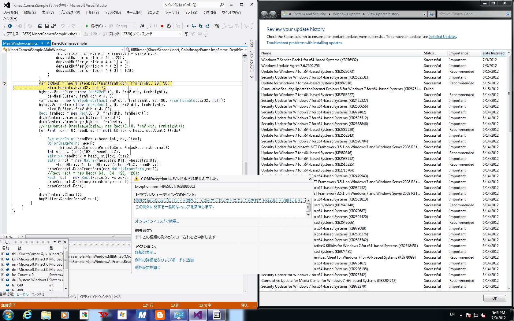 次はハンズオンテキストがそのままではエラーばかりなので、直しながらkinect の理解を深めてゆく。