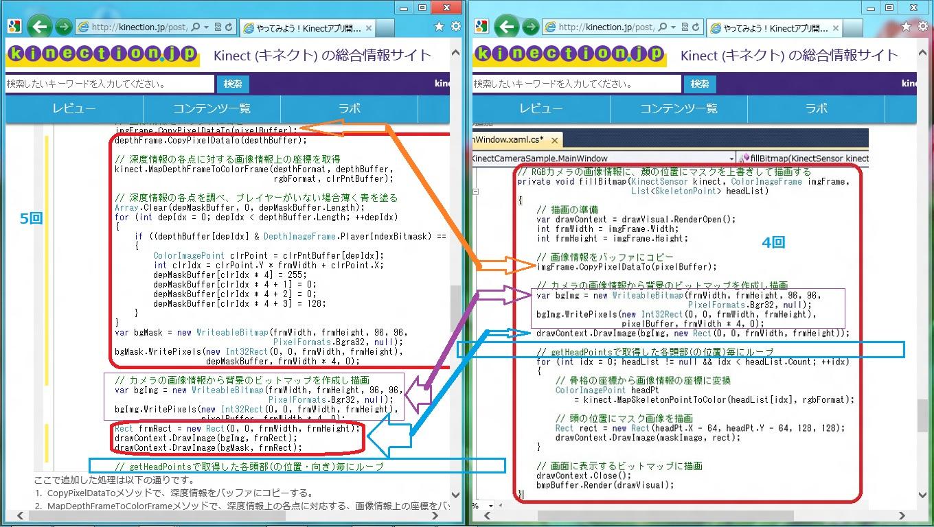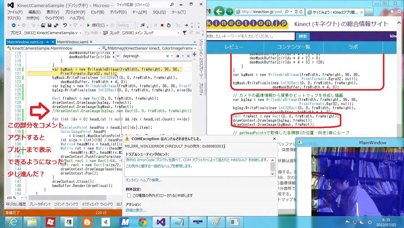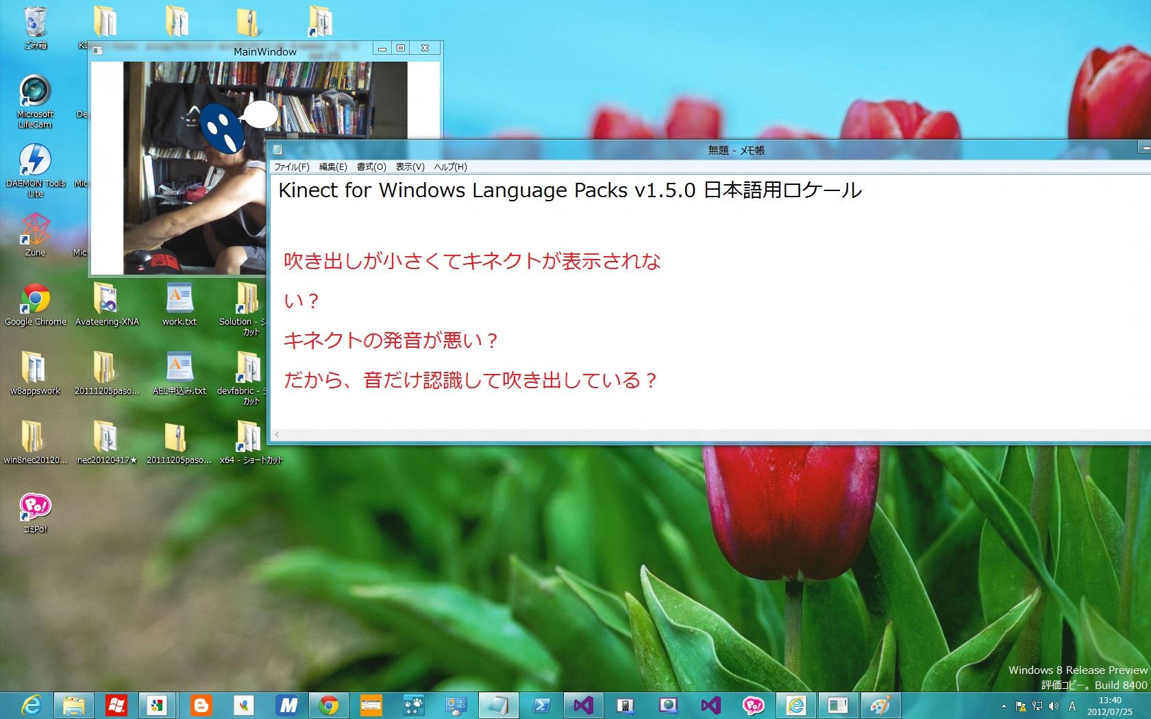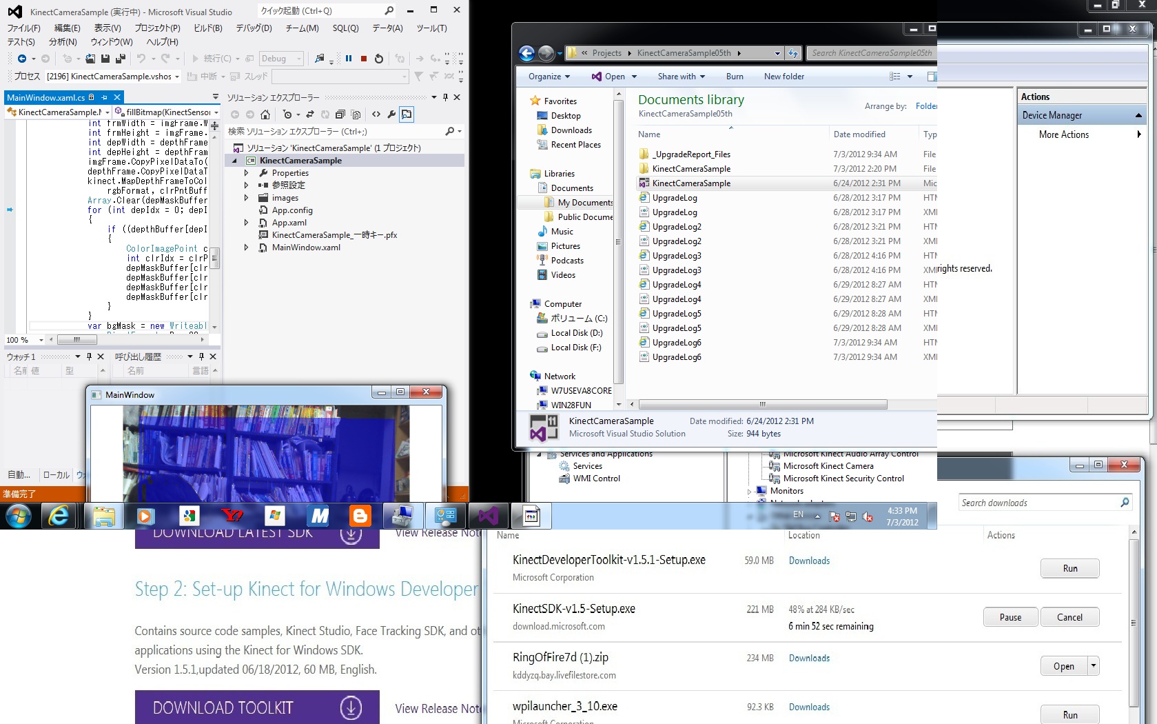 次のページにkinect と windows 8 metro アプリと usb web camera の連携するための