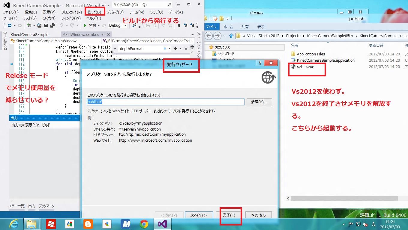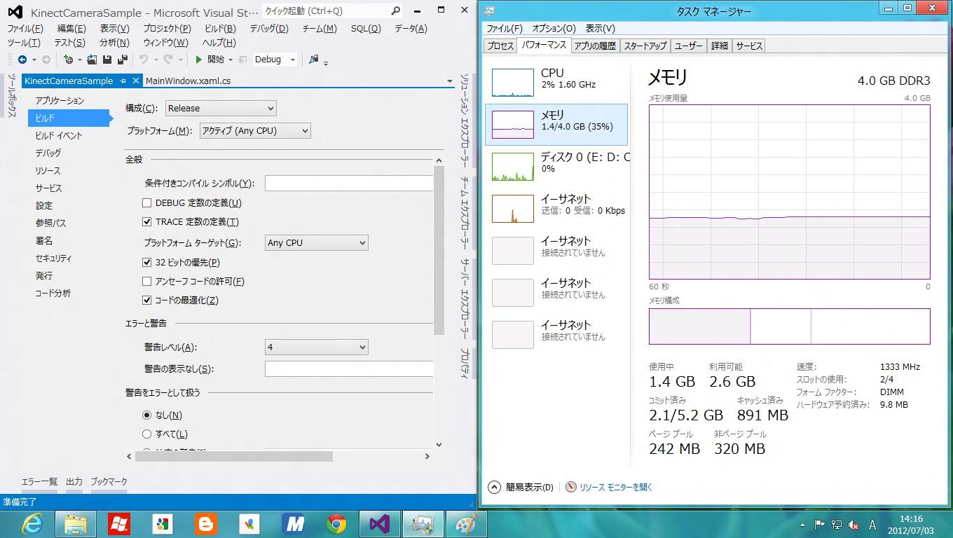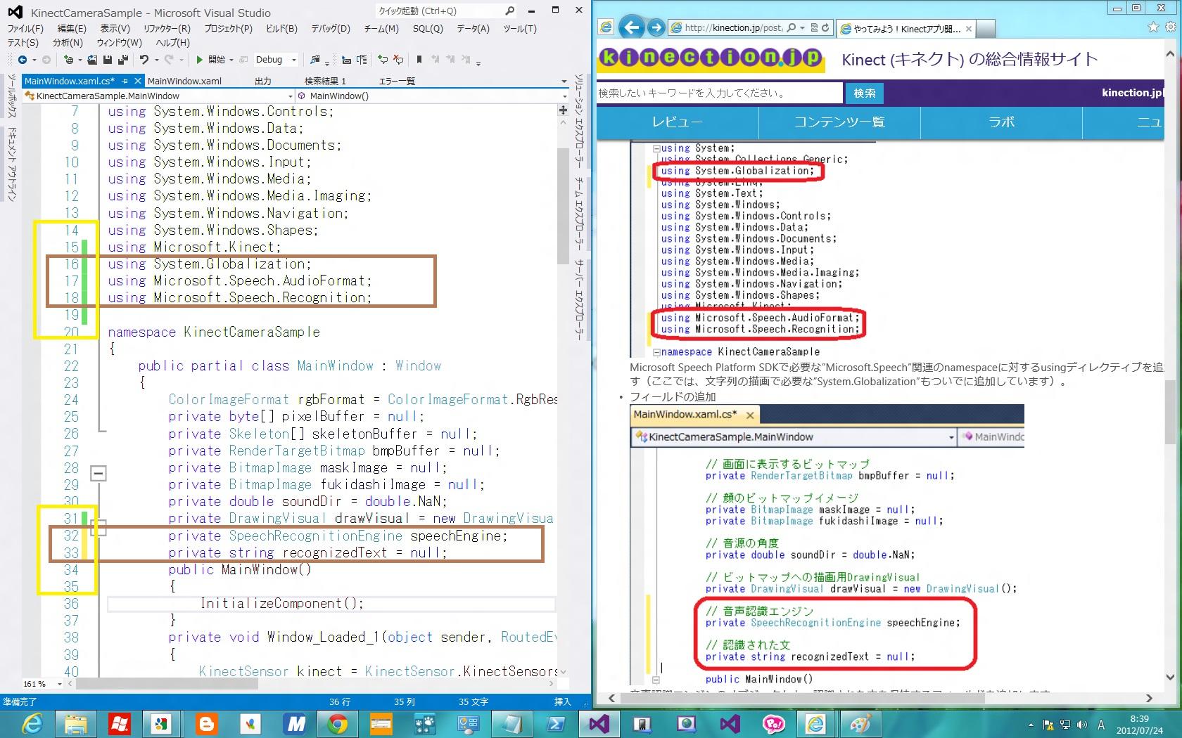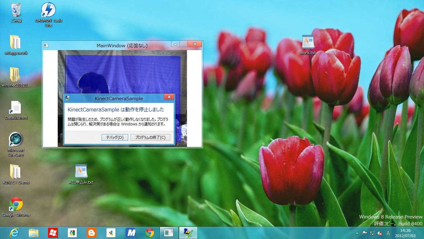 次のページにkinect と windows 8 metro アプリと usb web camera の連携するための