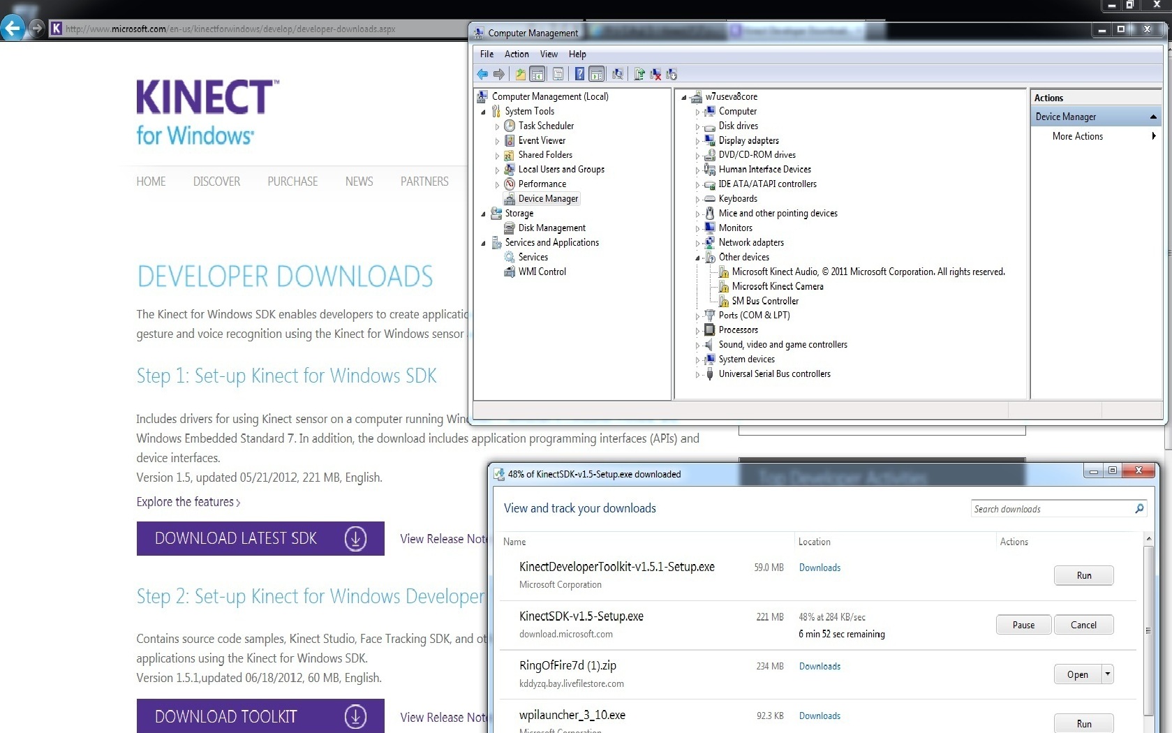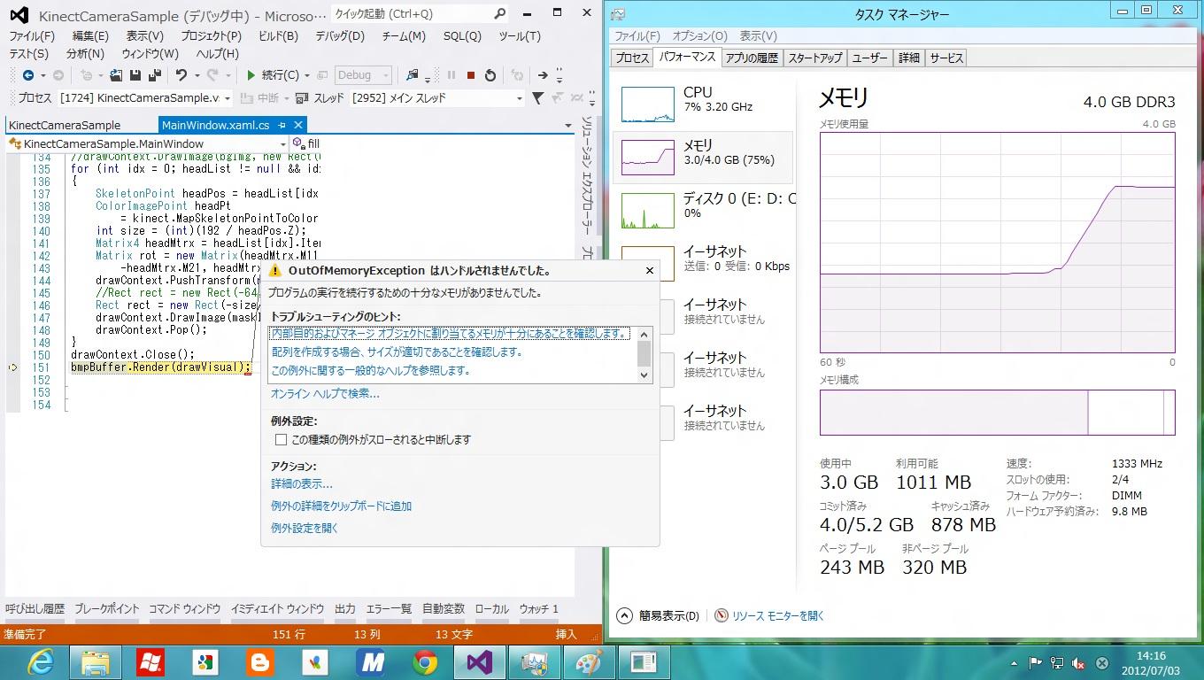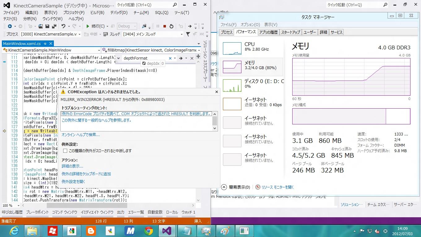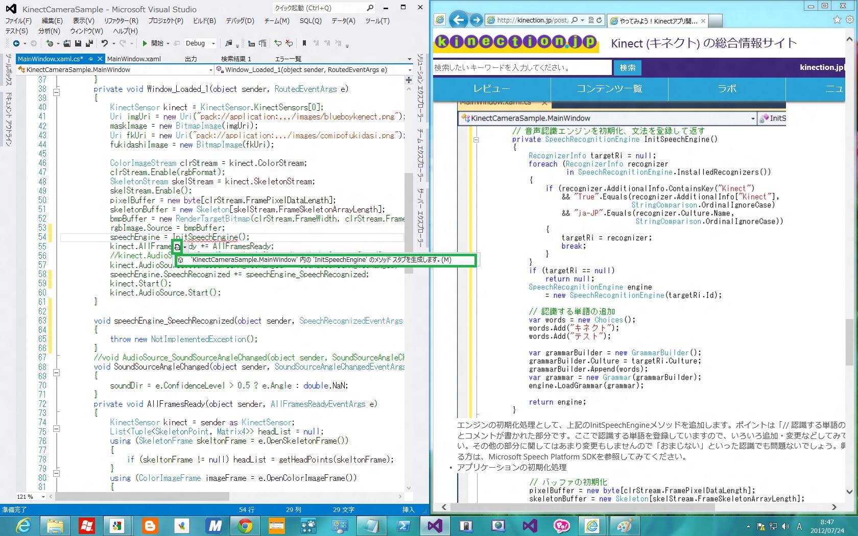 次のページにkinect と windows 8 metro アプリと usb web camera の連携するための