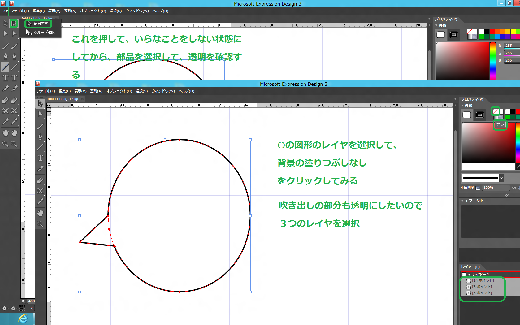 Expressin Design 3 or 4 で楕円形で背景が透明の画像を用意する。