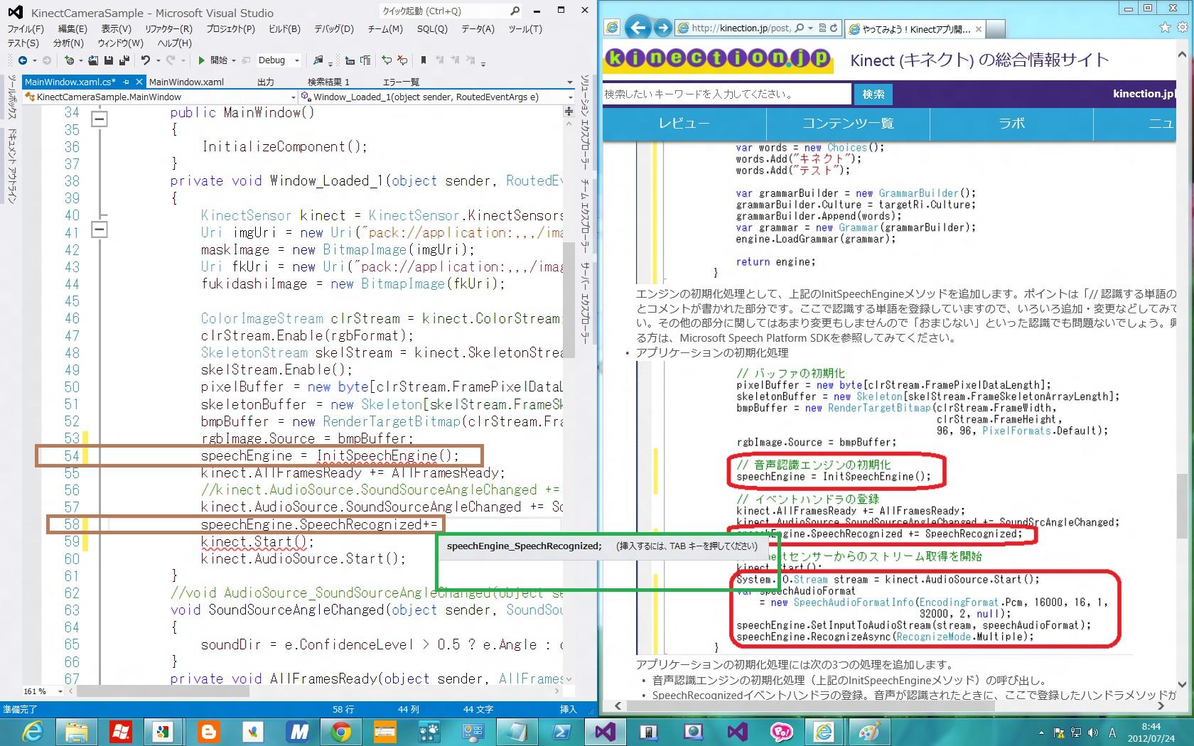 第7回 吹き出しテキスト改造後SpeechRecognizedのイベントハンドラ登録できました!