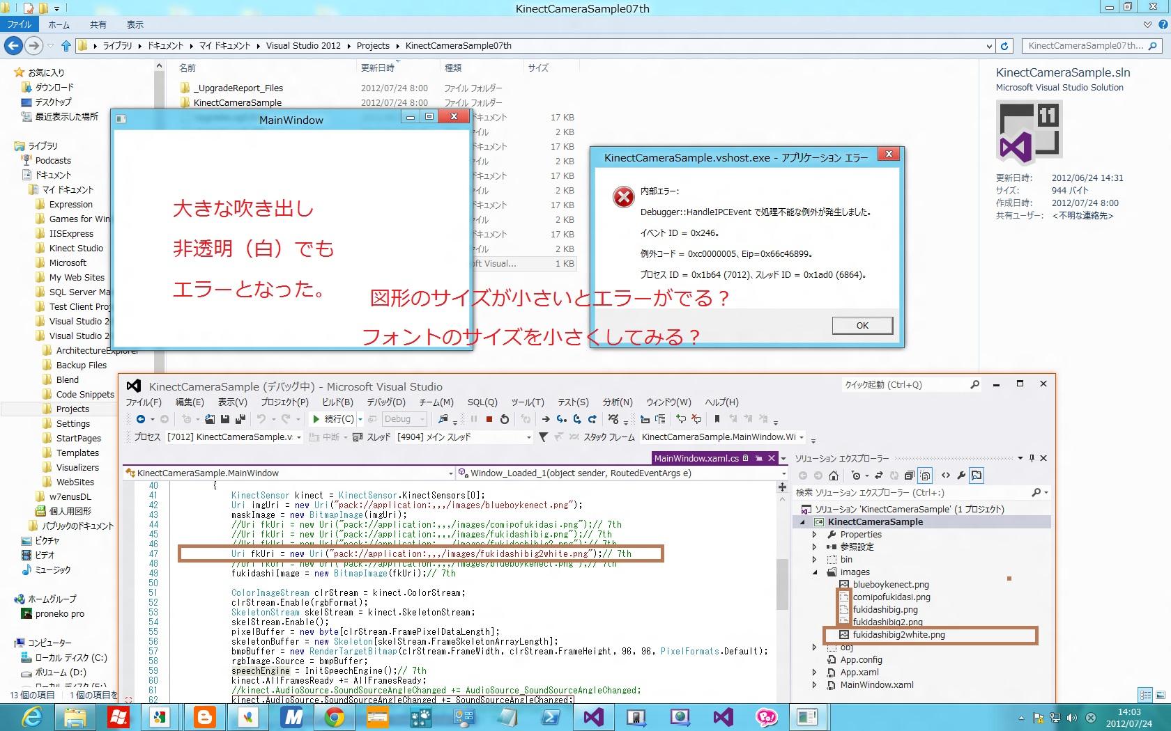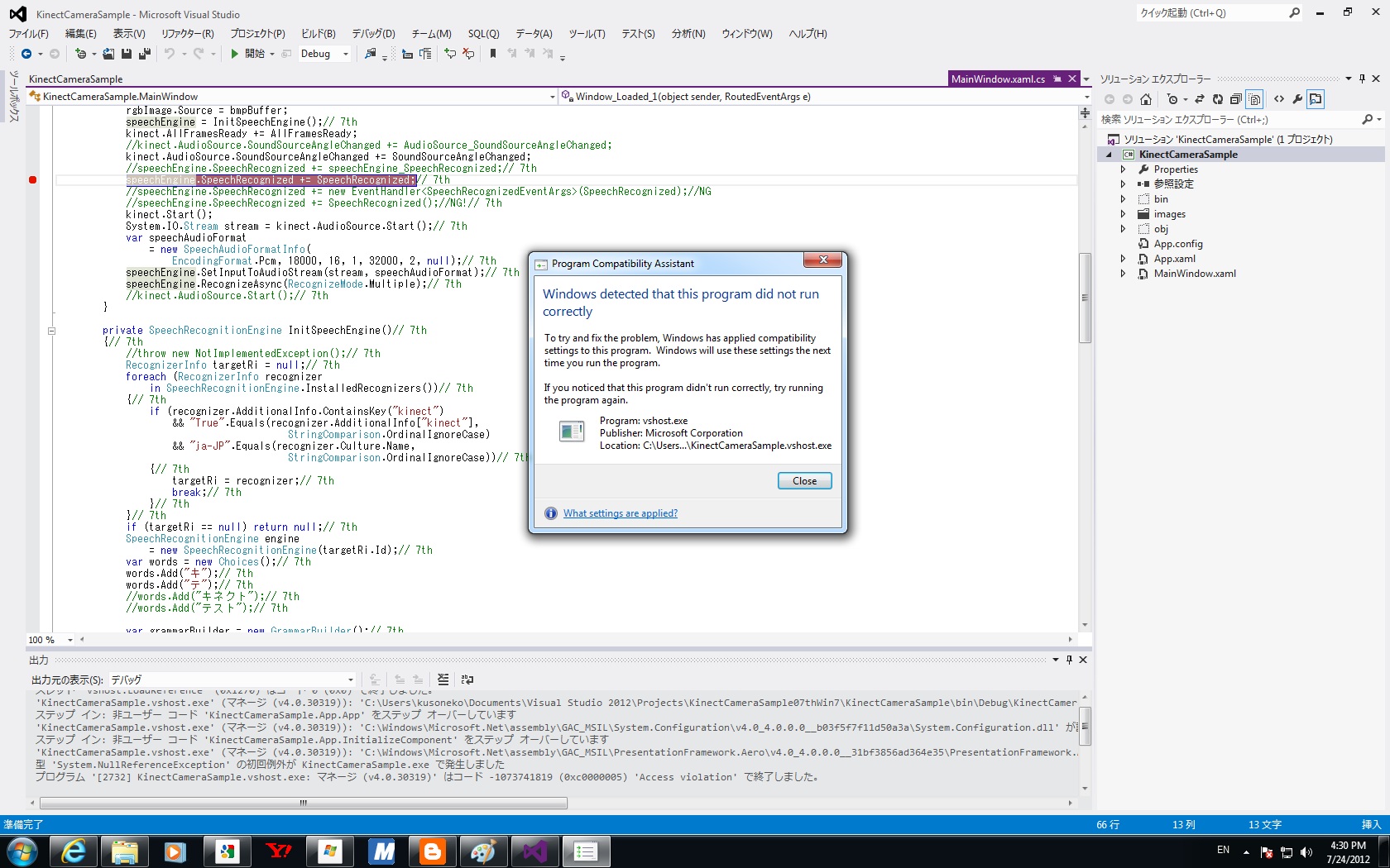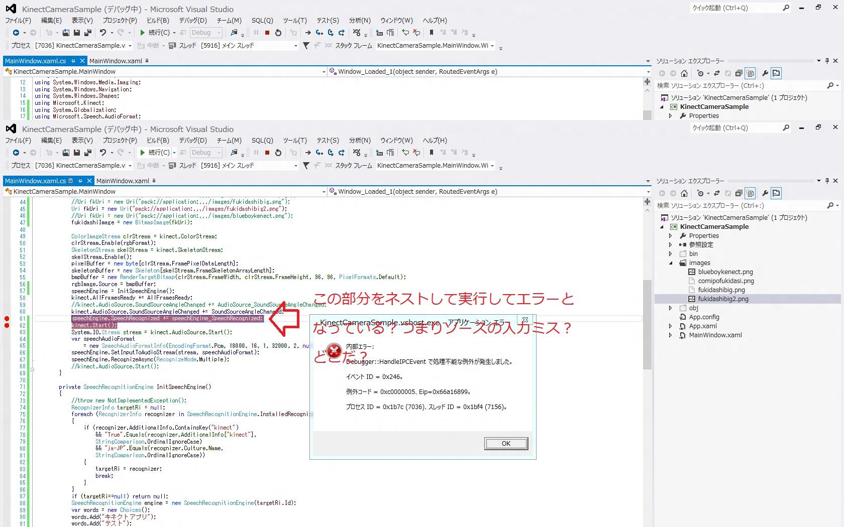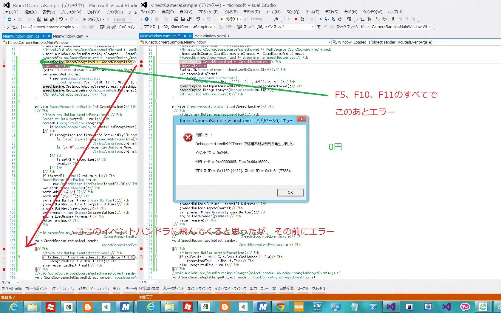 第7回 吹き出しテキスト改造後SpeechRecognizedのイベントハンドラ登録でエラー!