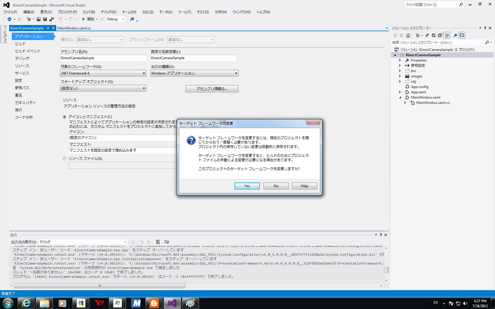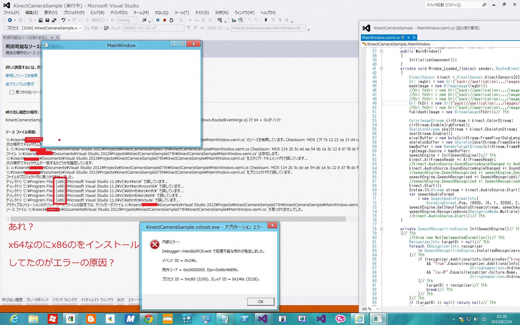 ----↑---- Kinect Sensor と Windows ストアアプリの連携の準備開始しました!-------