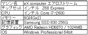 以前に夏のお楽しみ!お家で誰でもクリエイター!でご提供いただいたクリエイターPCをSamsung SSD 830 11DAYS REVIEWでご提供いただいた256GのSSDに換装させていただいております。主なスペックは下記のようになっております。