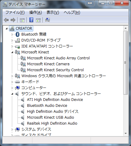念のため設定完了後にデバイスマネージャーにて、正常にkinectのデバイスが認識されているかどうかを確認してみました。