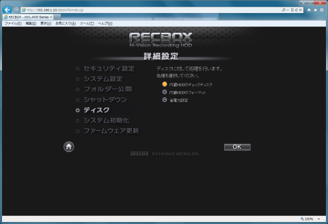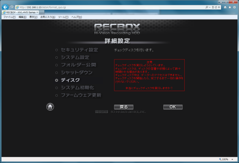 詳細設定を選択して、ディスクを選択、内蔵HDDのチェックディスクを選択してOKを押します。