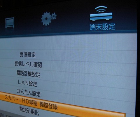 端末設定のスカパー!HD録画 機器登録を選択します。