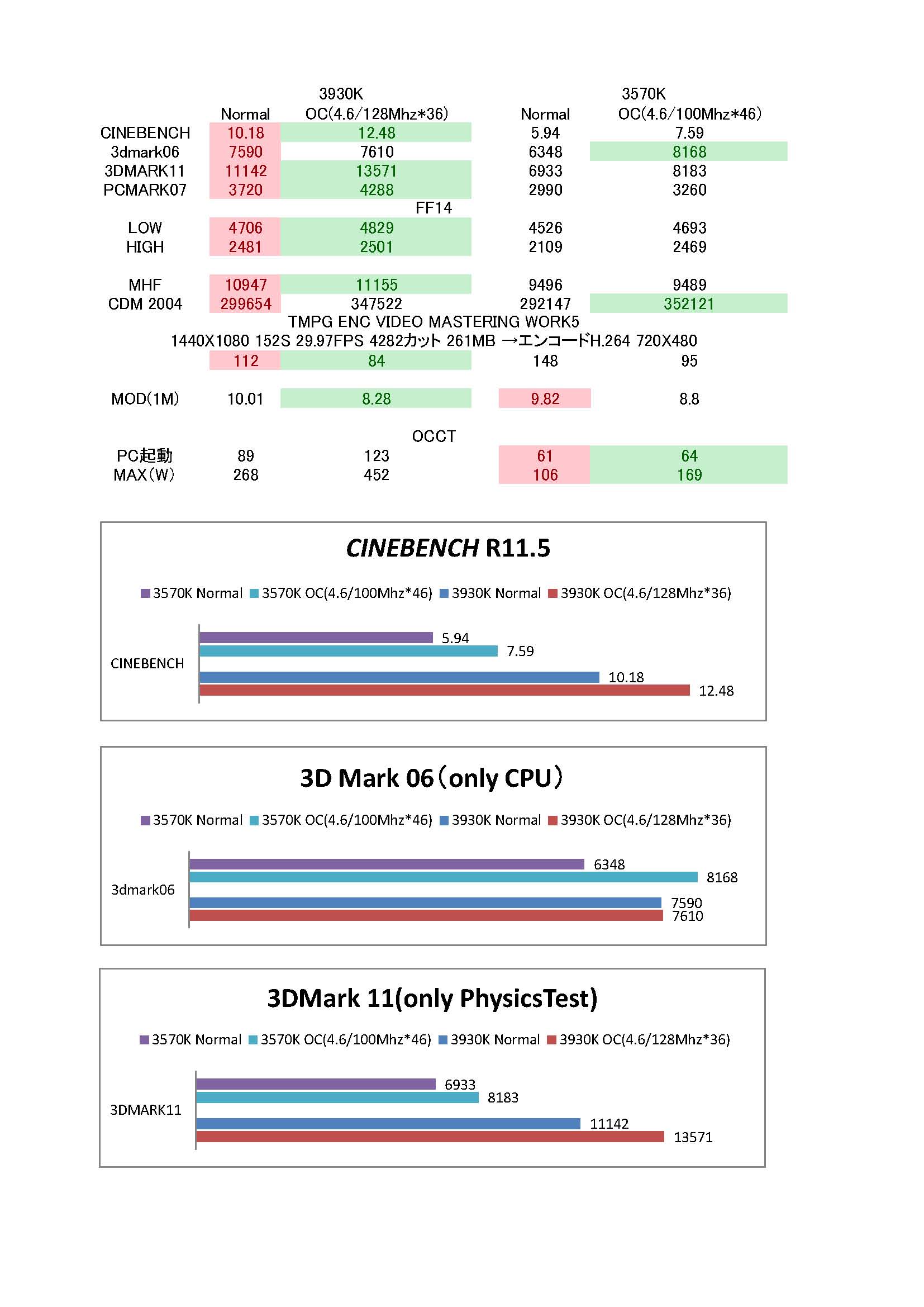 ○ 最下段3枚は今回のオーバークロックの結果のみを記したものです。