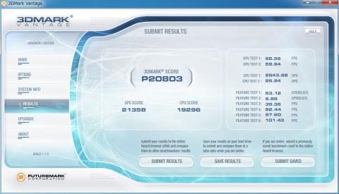 3D Mark Vantage ではCPU内蔵GPUではエラーが出て動作しませんでした。
