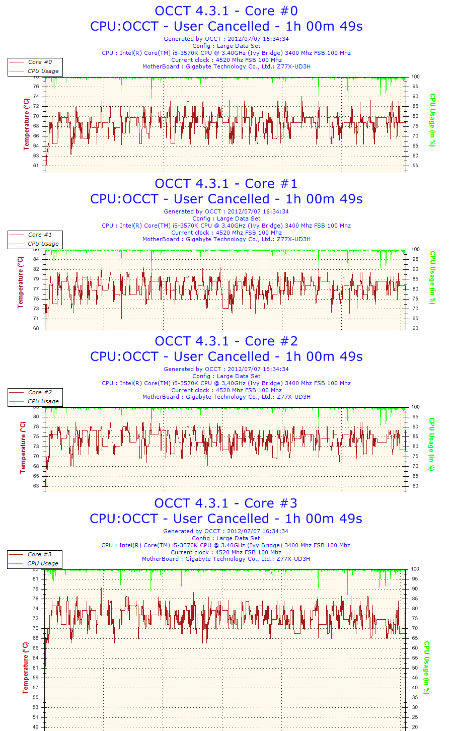 660だと4.25GHzで75度は行くのに3570Kは4.5GHzで70度前後が最大です