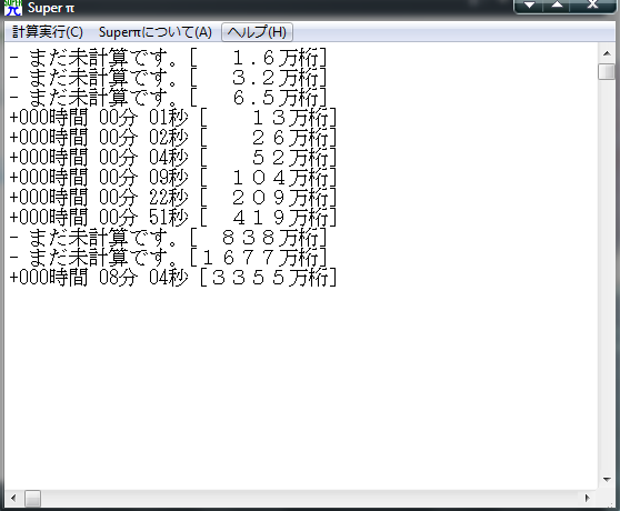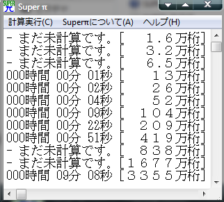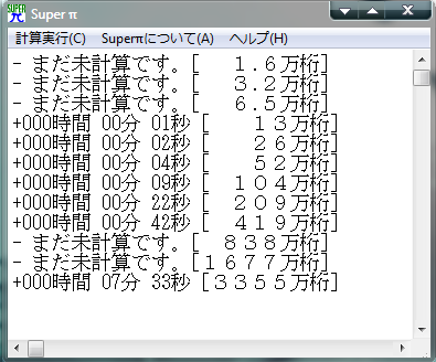 π計算「super pi」を使ったスコア計算