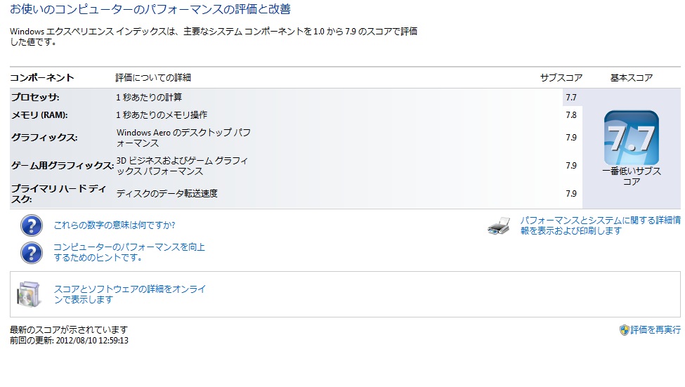 Z77チップセットでのエクスペリエンスインデックスのハードディスクのスコア値はH55と同じ結果となってしましました;;