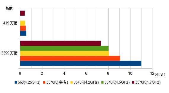 コレで比べている660はOCをして4.25GHzで動作させているのですが同じだけOCした3570Kと比べると17%ほど3570Kが660より短く計算をしています