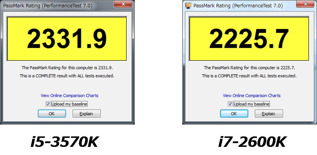 おー! 第3世代 i5-3570K が、予想を上回る好結果、i7-2600K を超えている