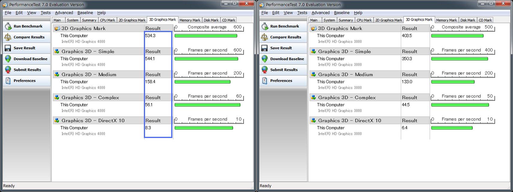 内蔵のHD4000 グラフィックの影響が大きいのでしょうか、えらいこっちゃww