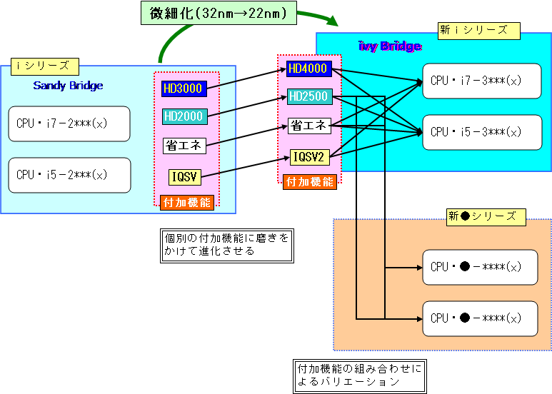 ○ Sandy Bridge から Ivy Bridge への進化イメージ