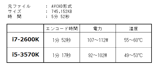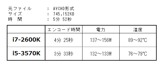 QSVバトルの結果はご覧の通り、i5-3570K 圧勝です ^^;