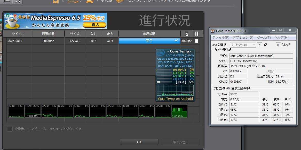 i7-2600K / TMPGEnc Video Mastering Works 5 でエンコード