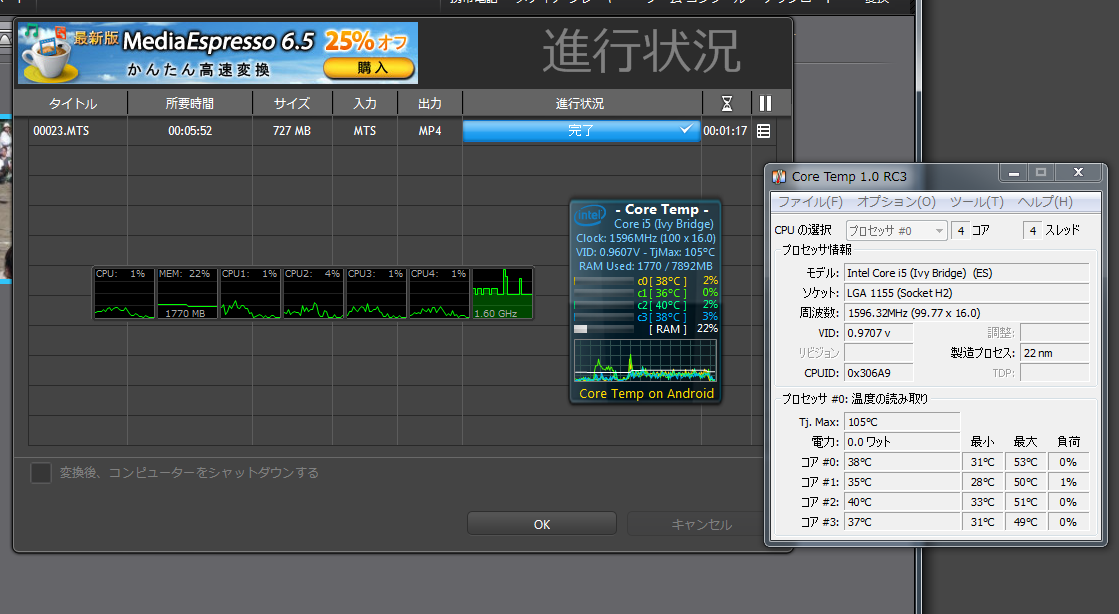 i5-3570K / TMPGEnc Video Mastering Works 5 でエンコード