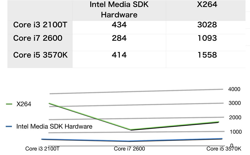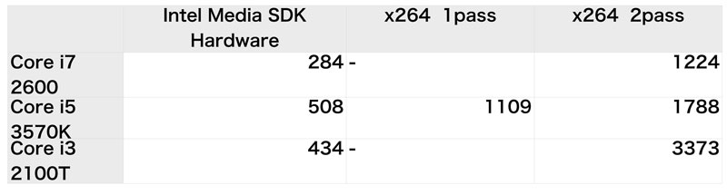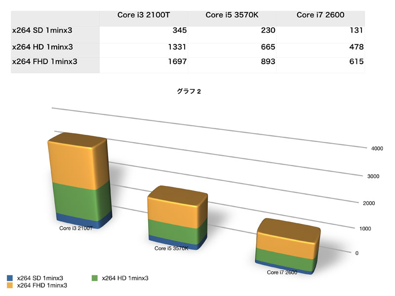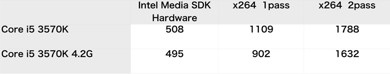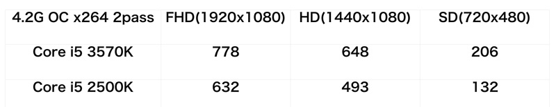 3570K単体での比較。x264でのエンコードではCPU温度が67℃に達するので、