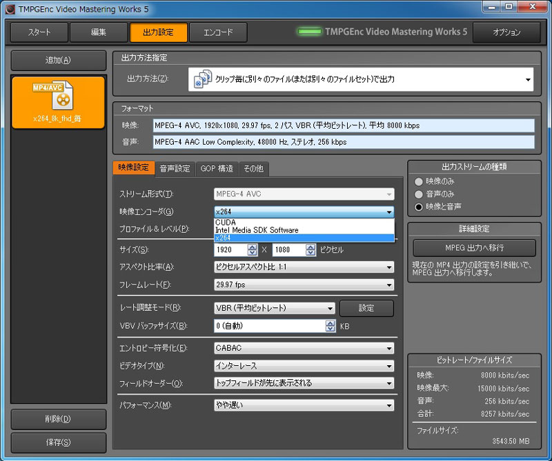 FHD1920x1080 av.8000 max16000 2pass high レベル4.1