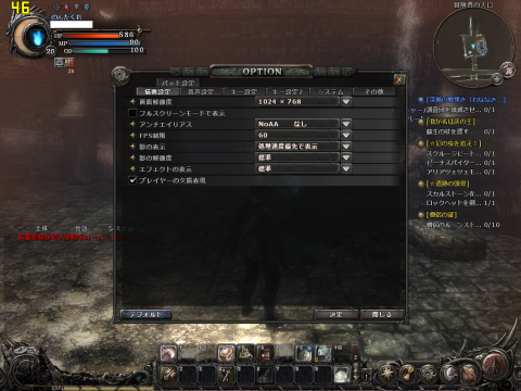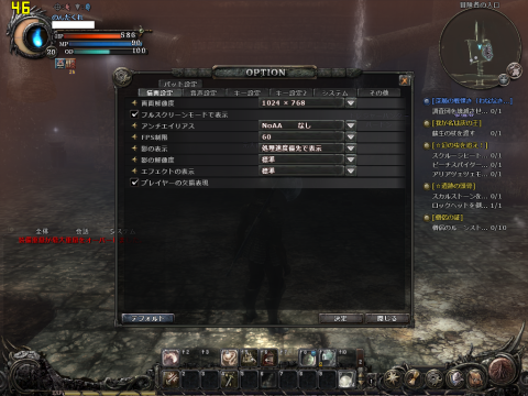 まずはウィンドウモードと画面サイズ以外はそのままの設定でログインしてみました。