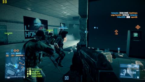 人数ではそれほど重くならないのかキャンペーンとそれほど変わらない感じがします。「映像品質 低」でもわりとリアルですね。HD Graphics 4000でBF3を遊ぶのはもっと厳しいと予想していましたが、予想よりだいぶ快適に遊べました。