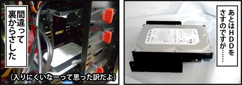 テンパっていたんでしょうね・・・。HDDなかなか入らないー(マザボにぶつかる~)と夜中に1人で格闘してました。