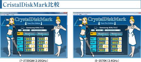i5-3570KはSATA3で接続しているため、全ての値において凌駕しております。逆に言うとSSDの性能をこれまできちんと発揮していなかったということですので、SSDに悪いことをしました。