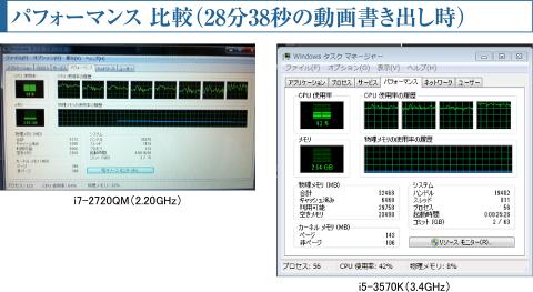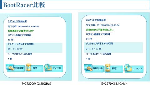 i7-2720QM(2.20GHz)とi5-3570K(3.4GHz)の速度の違いや入っているソフトの違いもありますので(3570Kは何もいれていない)単純にはいえませんが、早くなっています。