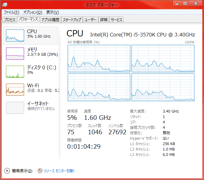 画面遷移が多いのですが、i5 3570Kにしてから待たされる感じがなくなりました。