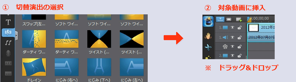 ※ 各チャプタの後ろに挿入することで、様々な効果で画面切替が可能。