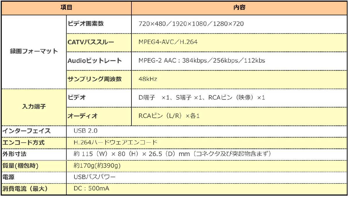 ・ バスパワ-でUSB1本で電力供給、映像入力が可能。
