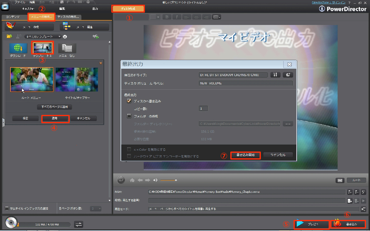 ⑤ 書込前に中身を確認 ⑥ 書込開始