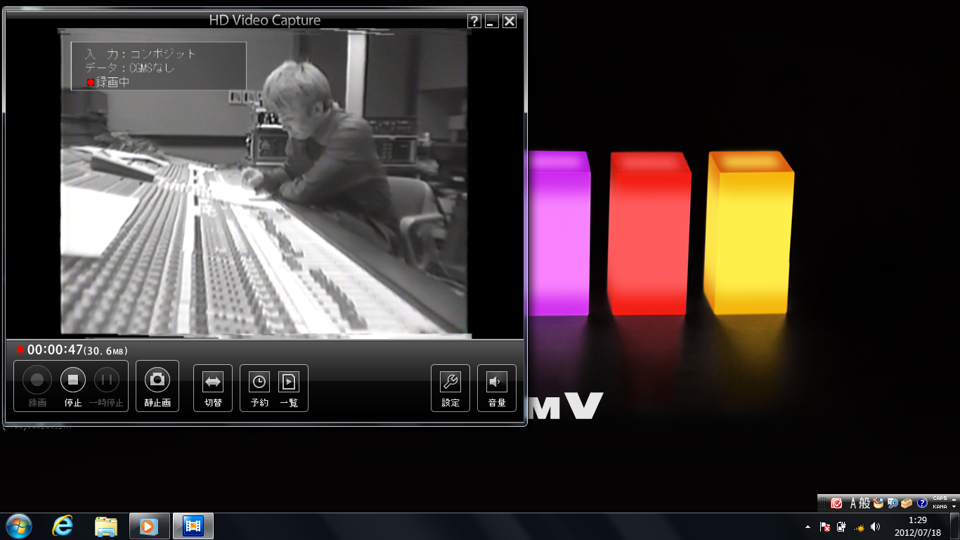 うまく「GV-D4HVR」を認識すると、HD Video Captureに映像が流れ始めます。