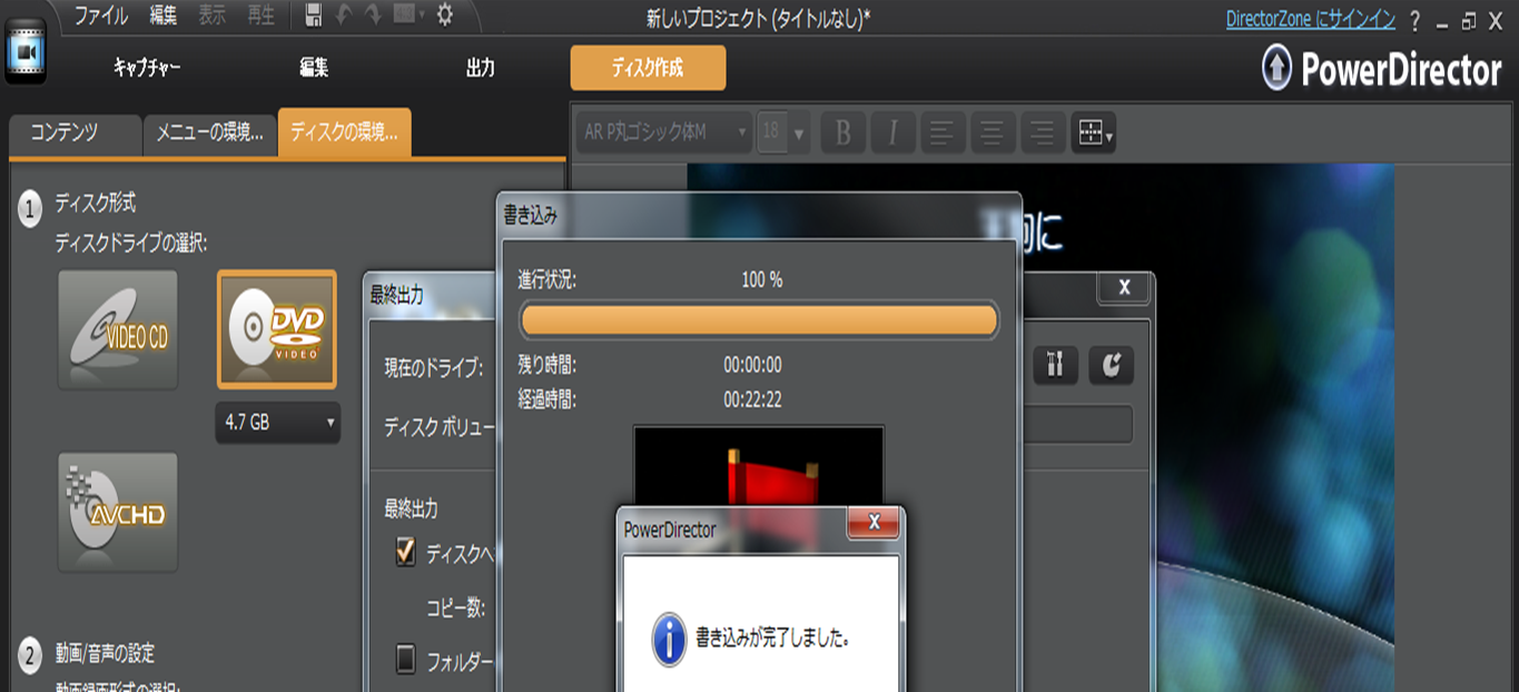 約38分の映像が、ちょうど22分22秒で書き込みが完了しました↓