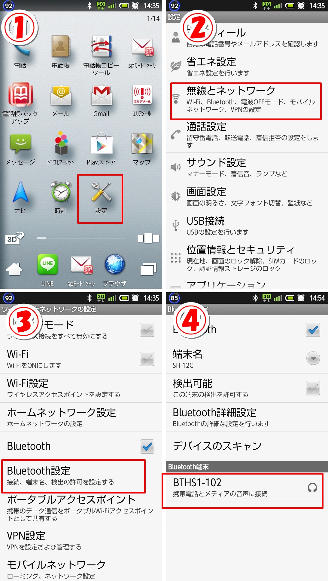 ※他のヘッドセットやBluetooth製品を接続しているとペアリングに失敗することがあるので、接続はすべて解除すること。それでも失敗する場合は、登録をすべて解除すること。