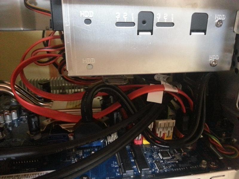 特にUSB3.0のコネクタがドライブケージの真下にあるので、無造作に取り付けると、ピンを曲げそうになります。