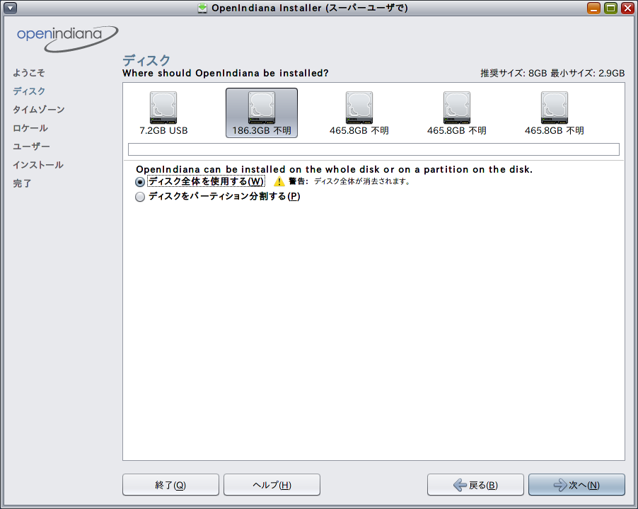 HDDイメージのバックアップを取っていよいよSolarisのインストールです。