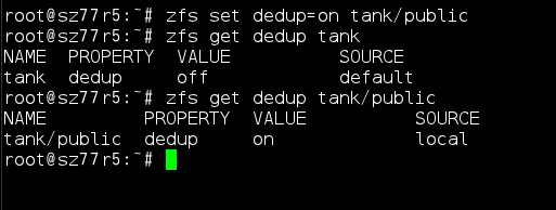 公開フォルダtank/publicのdedup属性をonにすることで重複排除機能が有効になります