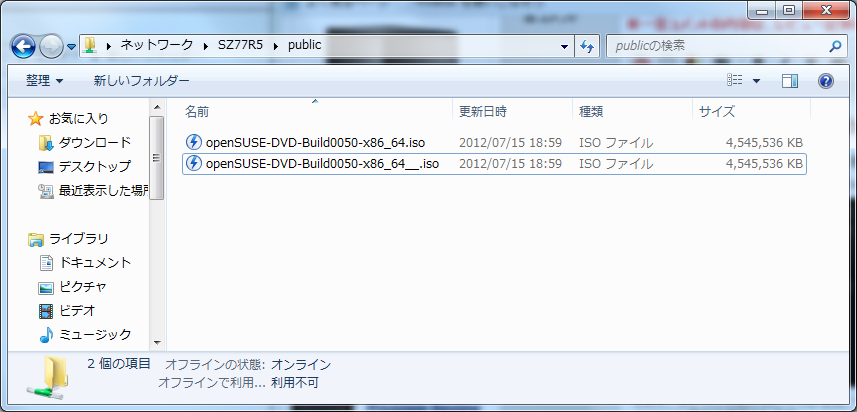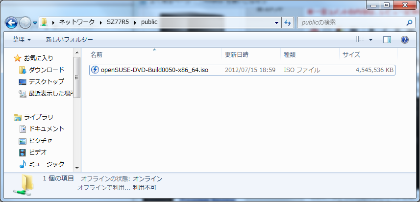 テストファイル:openSUSE 12.2 RC Install DVD.iso [約4.2GB]