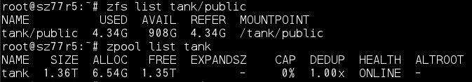 publicフォルダに4GBのisoファイルをコピーすると、4GBのエリアが使用中になり、zpool中にも4GB分の領域が確保されます。