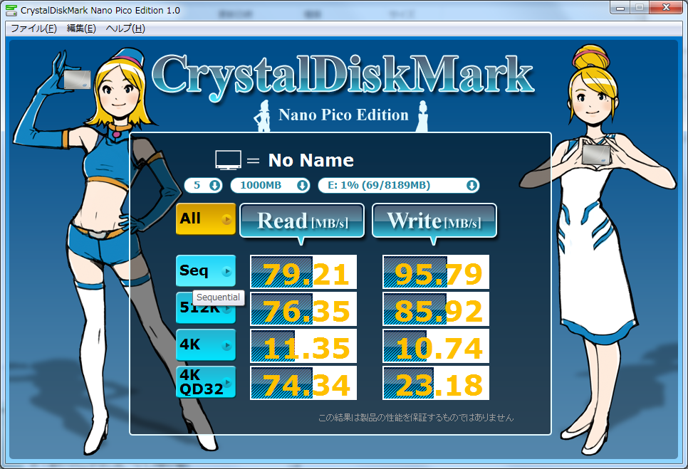 ネットワーク越しですが、ちょっと前のSATA-HDD程度の速度は余裕で出ています。