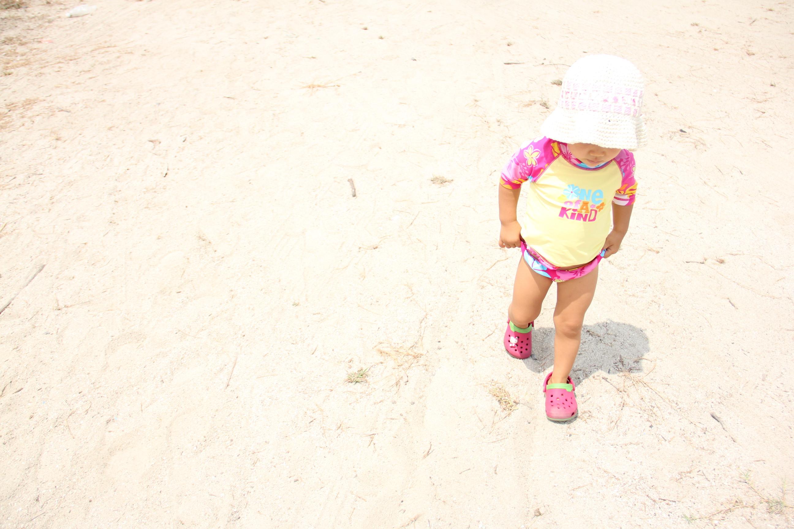 それを右肩にかけ、左手は自由気ままに歩き回る2歳児の手を掴んでいますから、