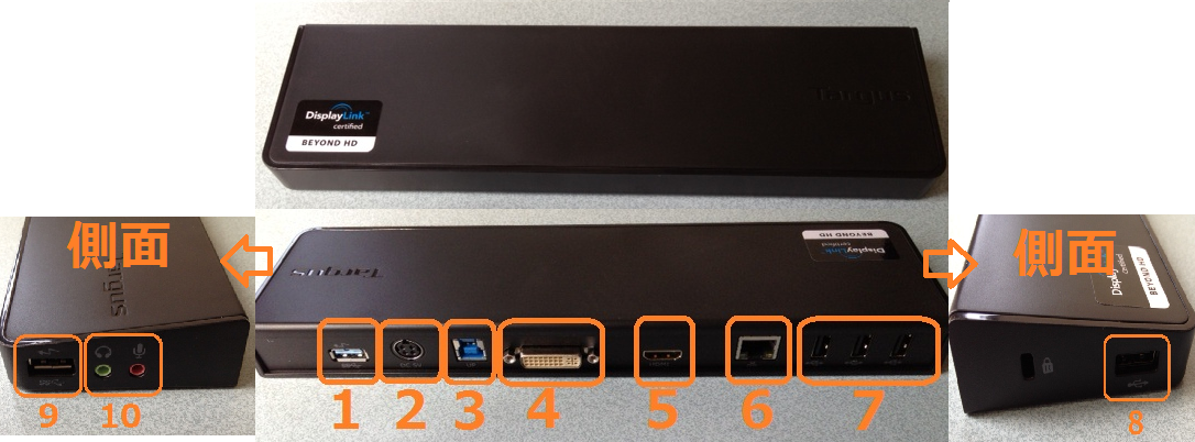 今回Windows 7 64bit PCのUSB3.0ポートとドックの 3、のPCよりUSB3.0差込口に